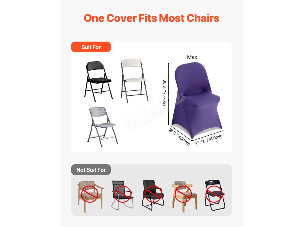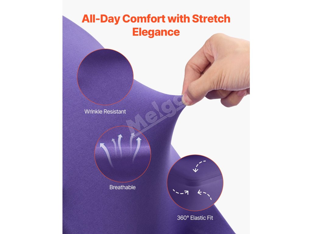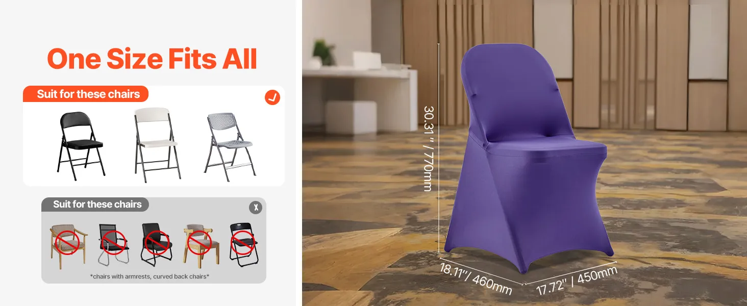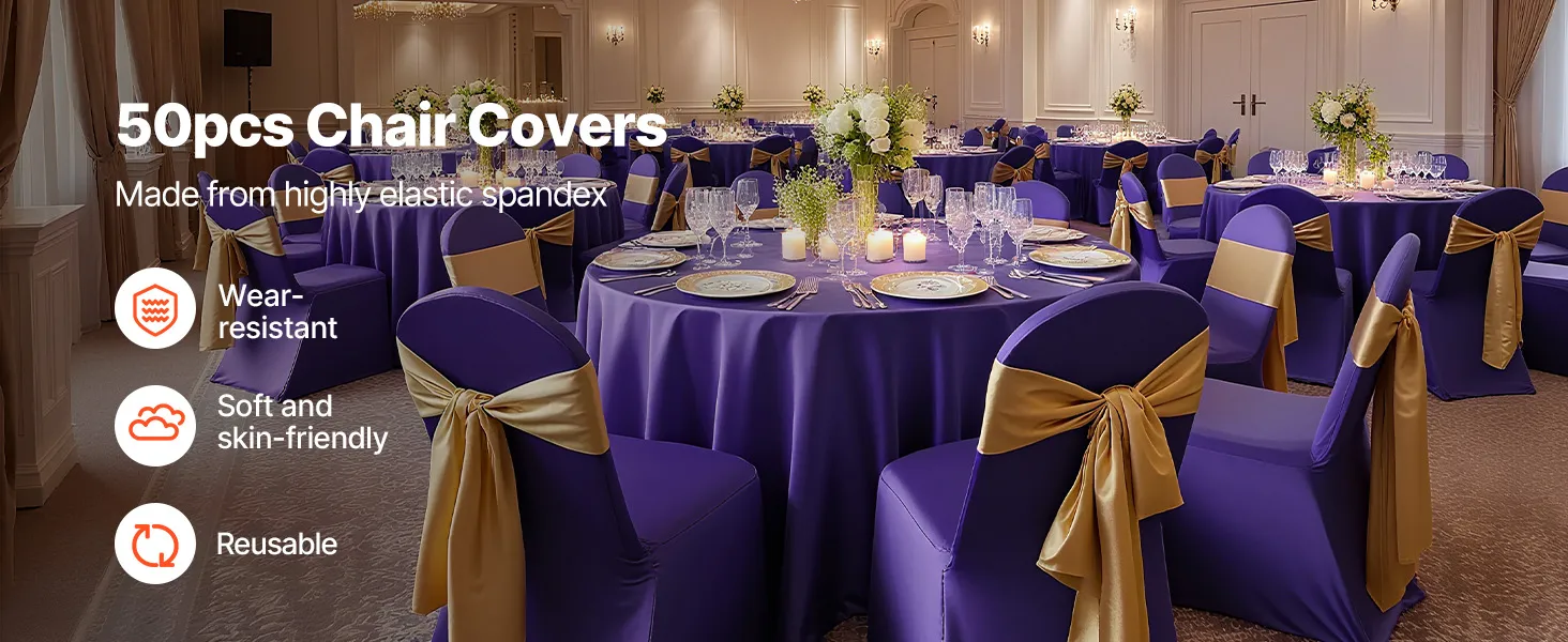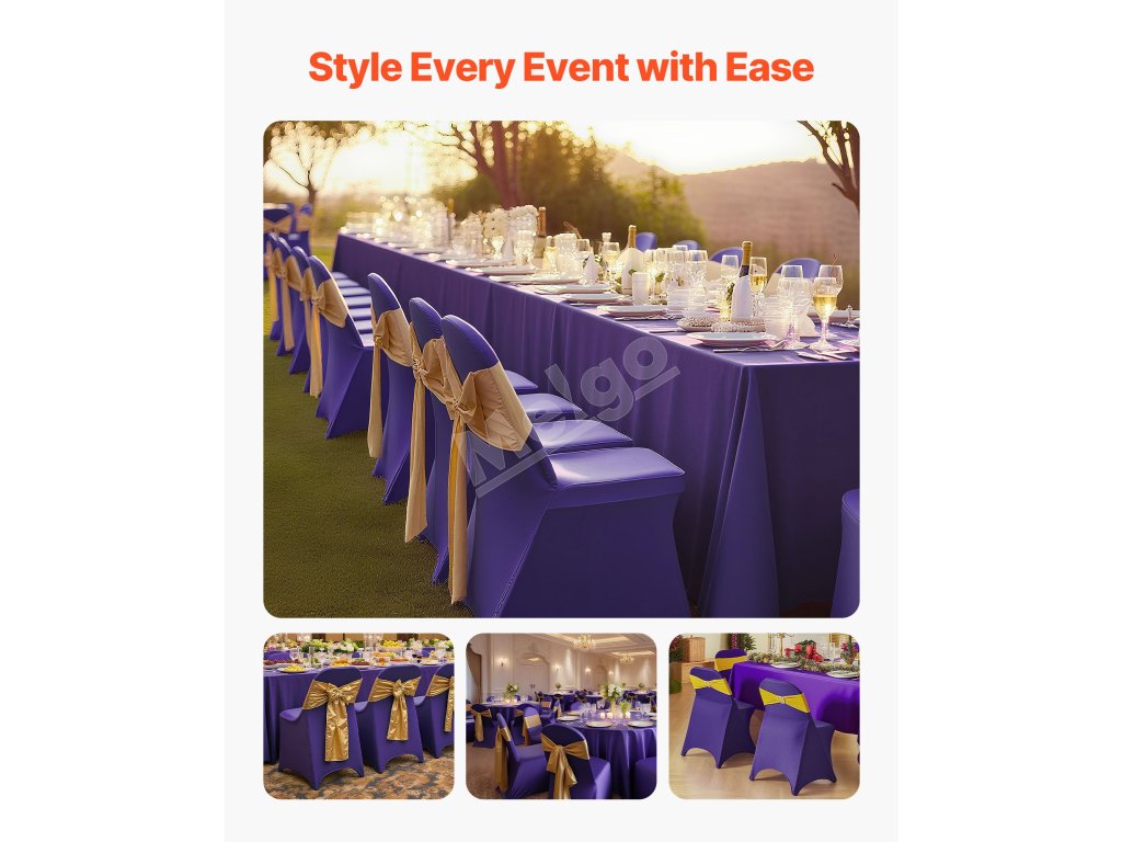 Táto elegantná súprava poťahov na banketové stoličky, vyrobená z vysokokvalitnej elastickej spandexovej tkaniny, zvýrazní jednotný vzhľad vašich stoličiek. Je ideálny na svadby, promócie, narodeniny a iné špeciálne príležitosti a dodá každej udalosti nádych sofistikovanosti a štýlu.