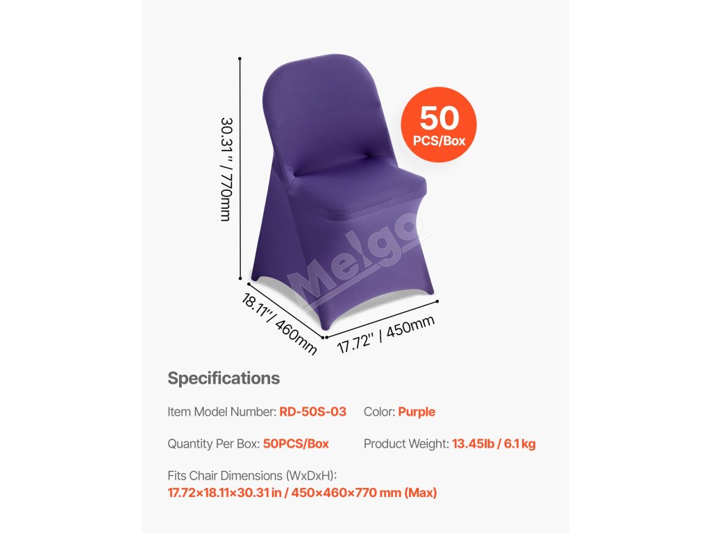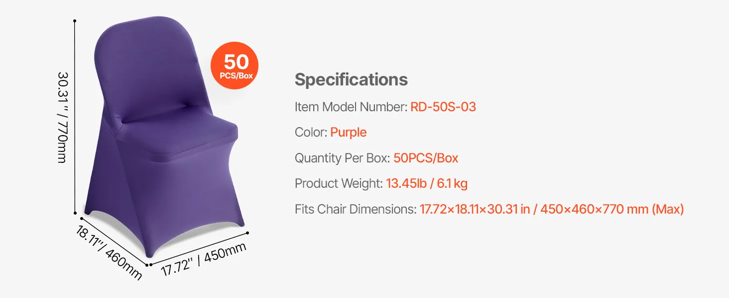 Poťahy na stoličky 50 ks, fialové, spandex, do 17.72×18.11×30.31 inch