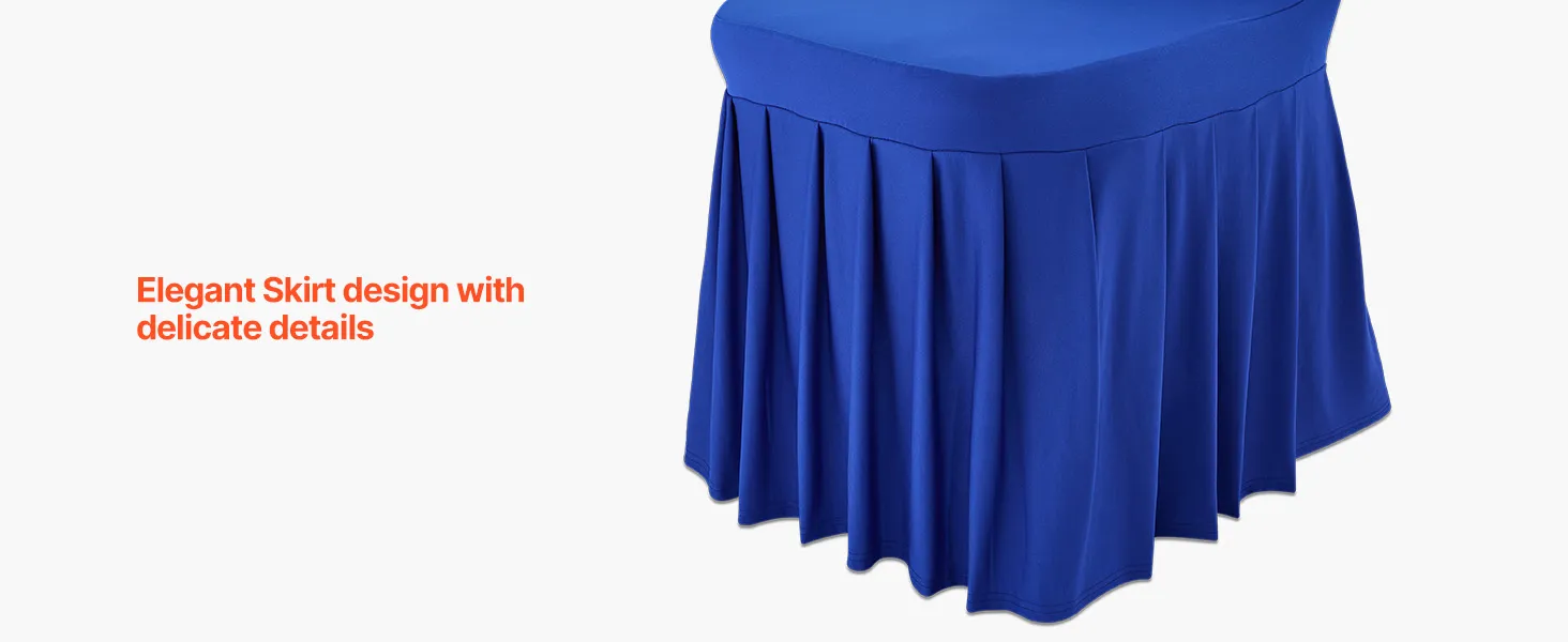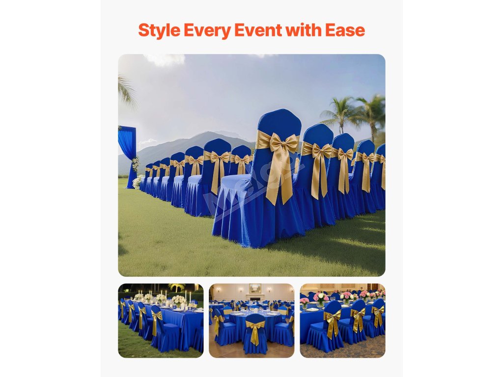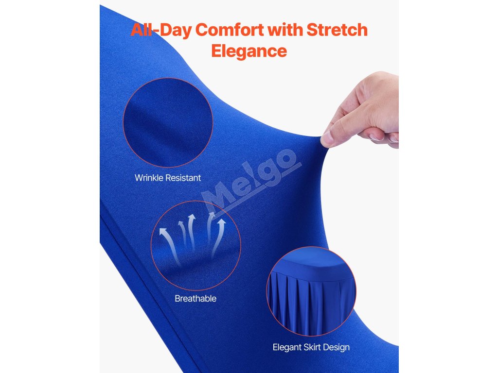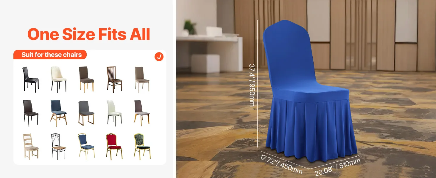 Táto elegantná súprava poťahov na banketové stoličky, vyrobená z vysokokvalitnej elastickej spandexovej tkaniny, zvýrazní jednotný vzhľad vašich stoličiek. Je ideálny na svadby, promócie, narodeniny a iné špeciálne príležitosti a dodá každej udalosti nádych sofistikovanosti a štýlu.