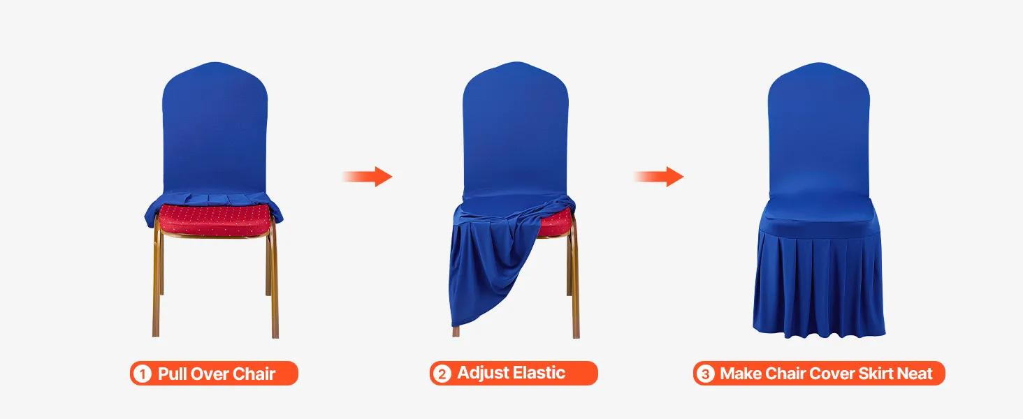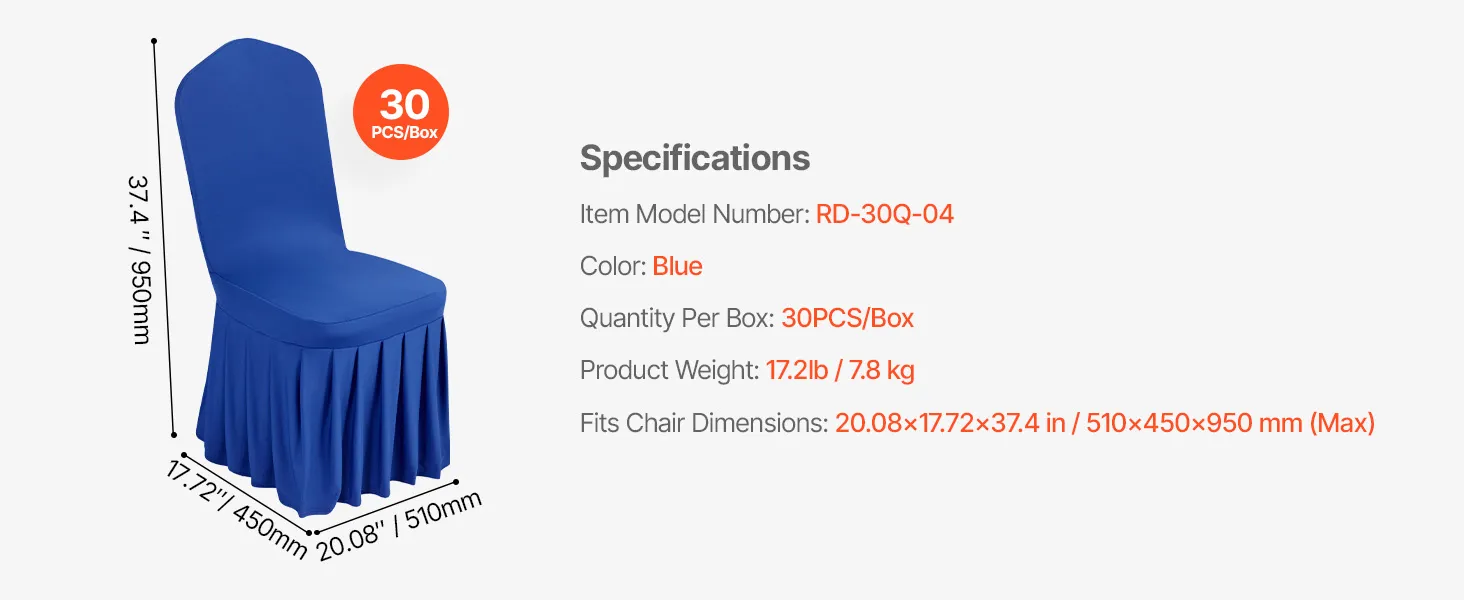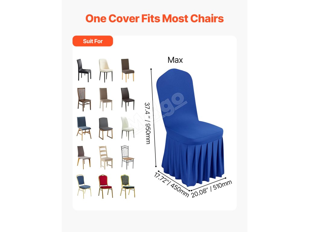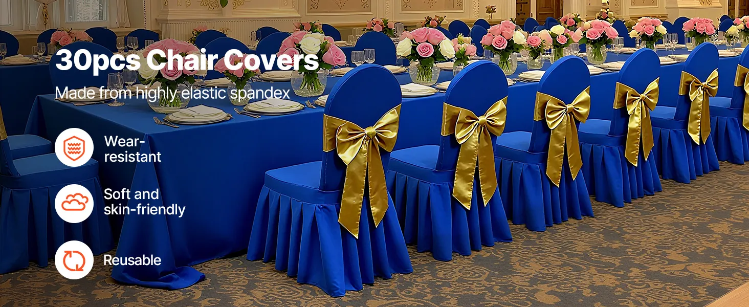Táto elegantná súprava poťahov na banketové stoličky, vyrobená z vysokokvalitnej elastickej spandexovej tkaniny, zvýrazní jednotný vzhľad vašich stoličiek. Je ideálny na svadby, promócie, narodeniny a iné špeciálne príležitosti a dodá každej udalosti nádych sofistikovanosti a štýlu.