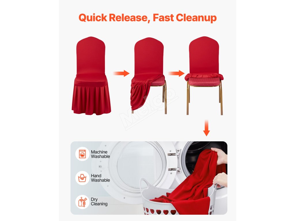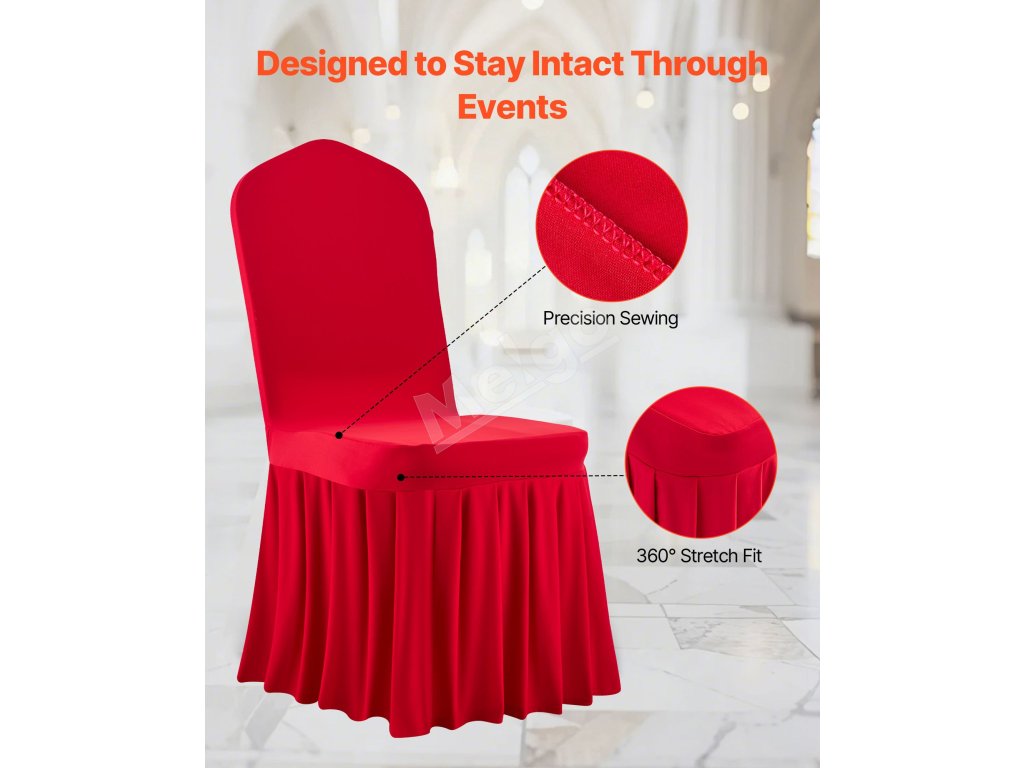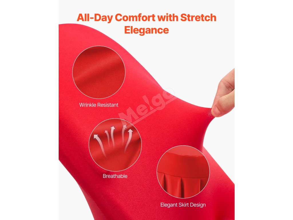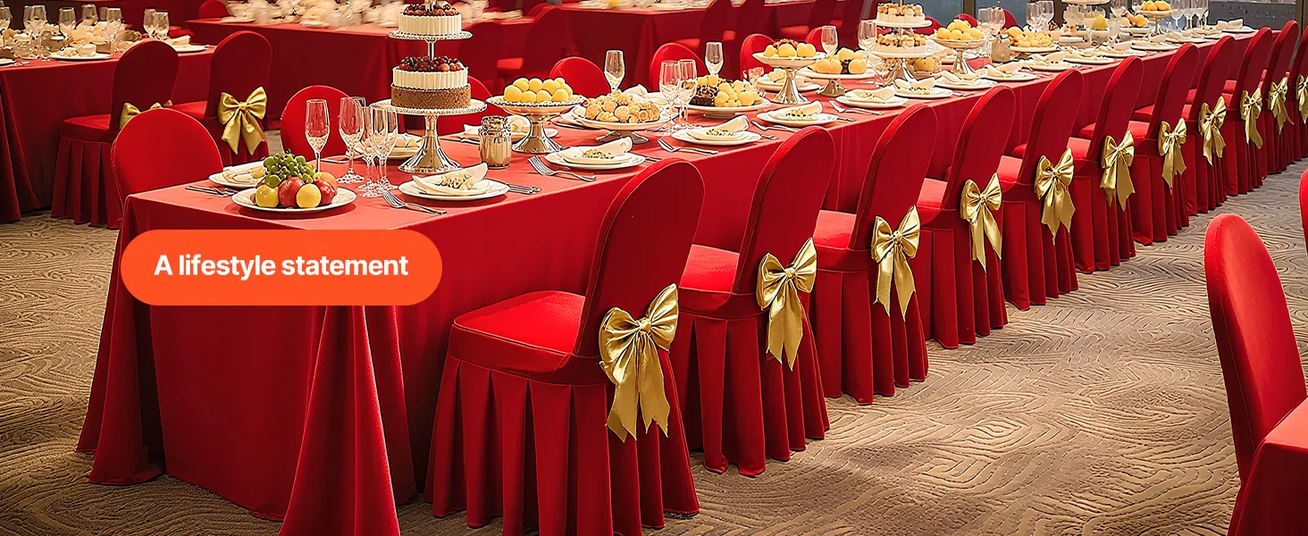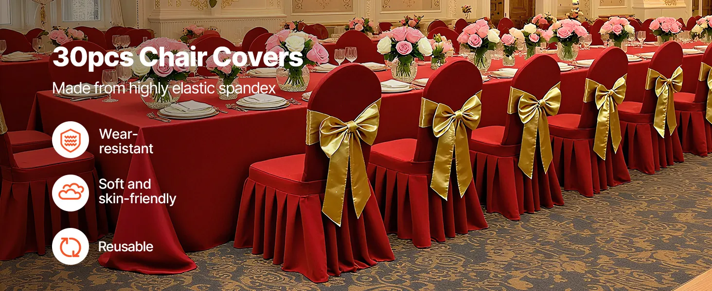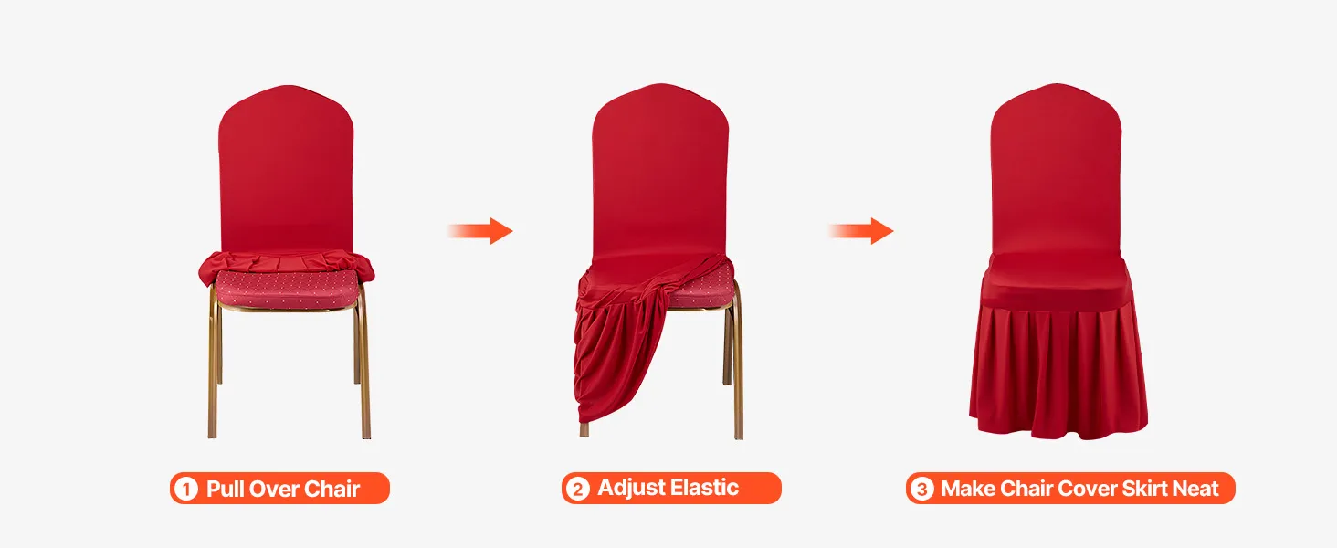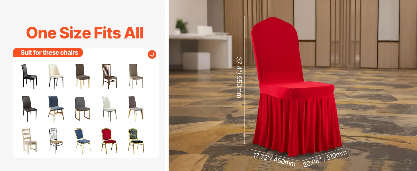 Táto elegantná súprava poťahov na banketové stoličky, vyrobená z vysokokvalitnej elastickej spandexovej tkaniny, zvýrazní jednotný vzhľad vašich stoličiek. Je ideálny na svadby, promócie, narodeniny a iné špeciálne príležitosti a dodá každej udalosti nádych sofistikovanosti a štýlu.