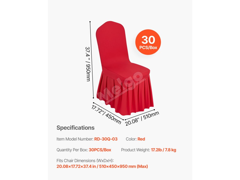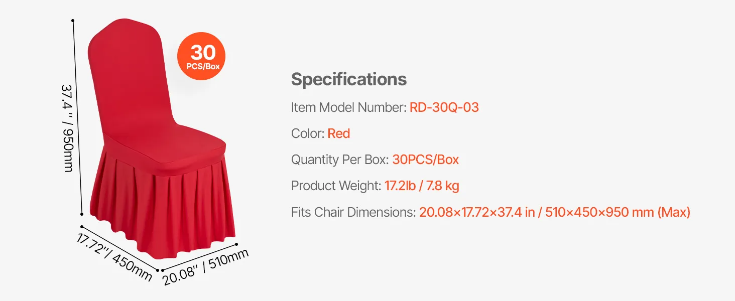 Stoličkové poťahy 30ks červené polyester/elastan 20.08×17.72×37.4 inch