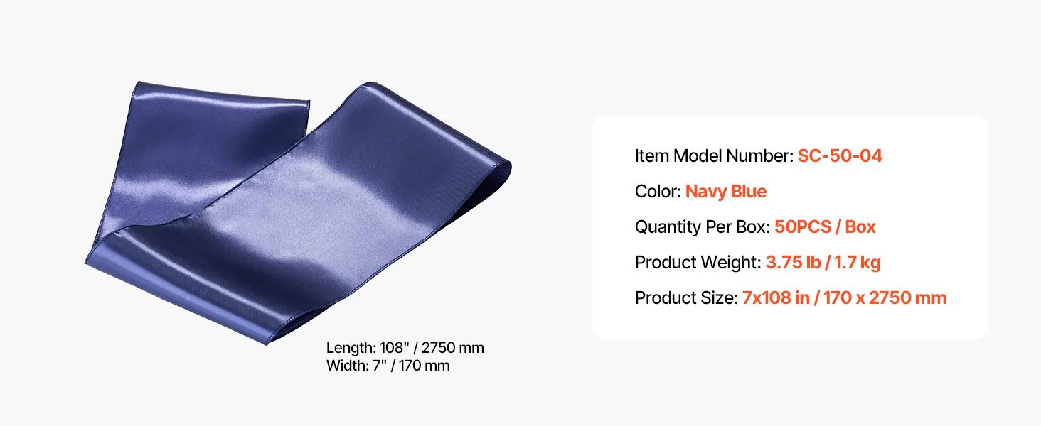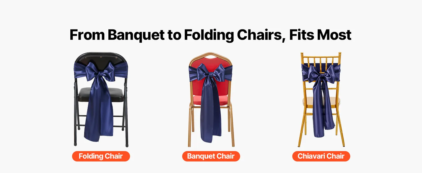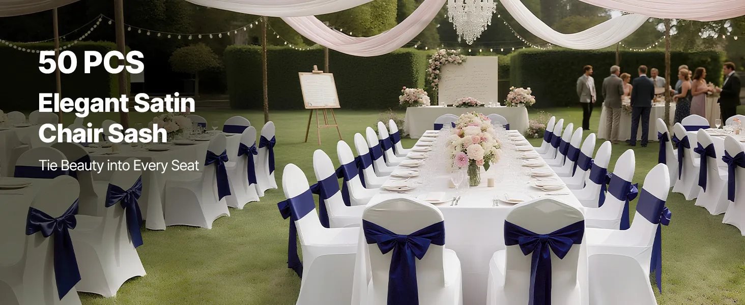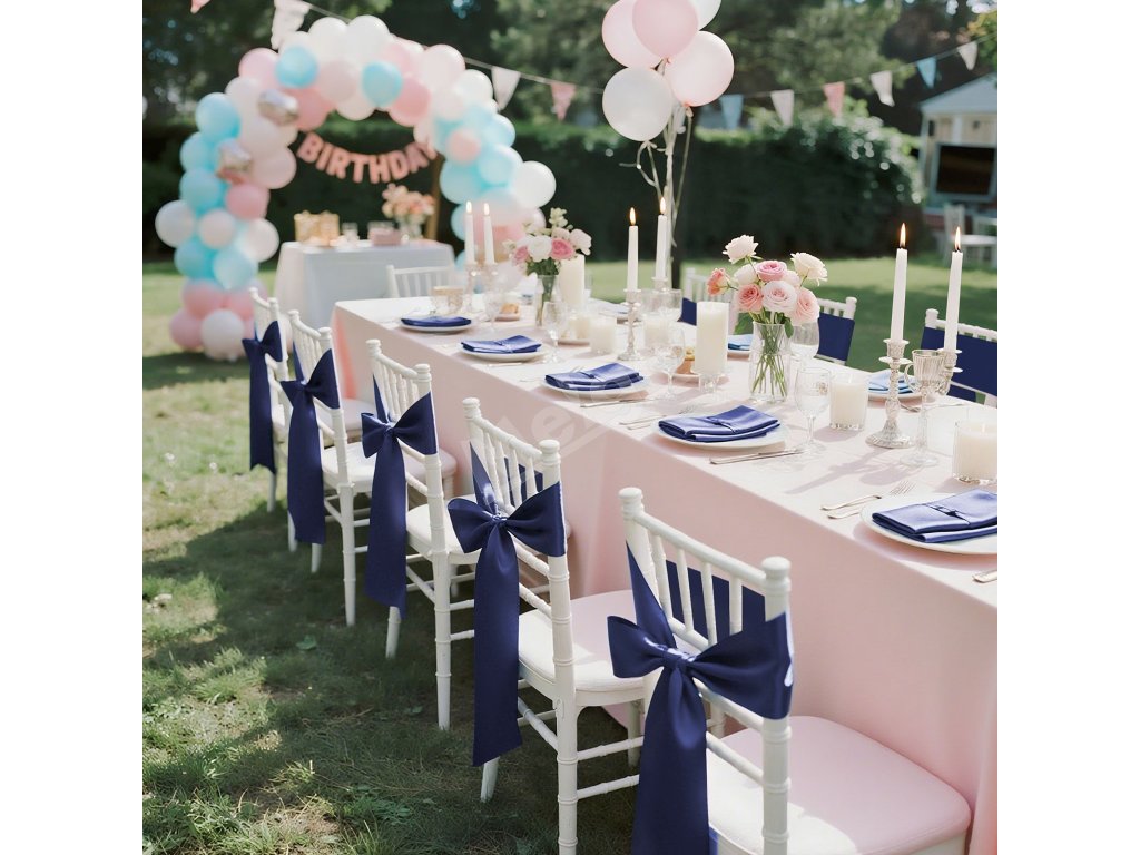 Stuhy na stoličky 50 ks, 7×108 inch, tmavomodré, na svadbu a oslavy