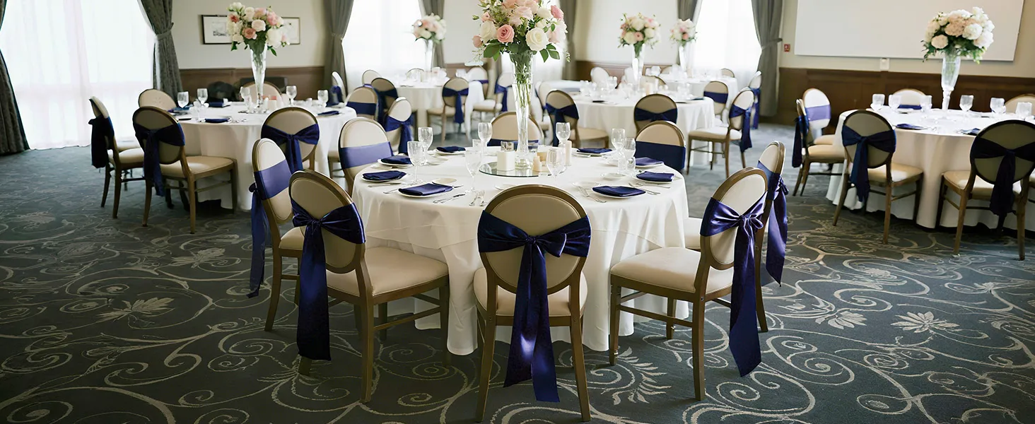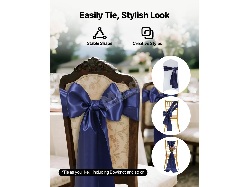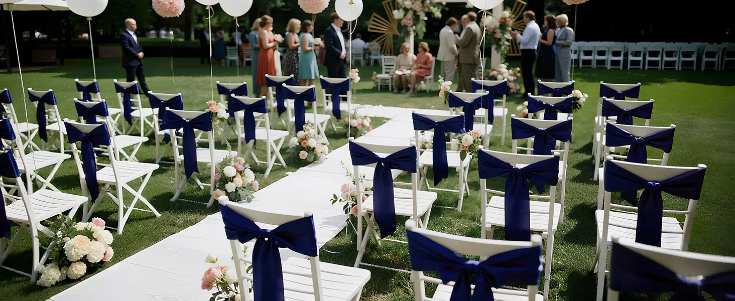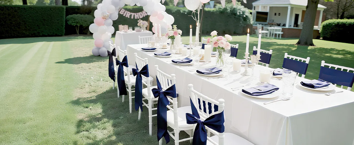 Stuhy na stoličky 50 ks, 7×108 inch, tmavomodré, na svadbu a oslavy