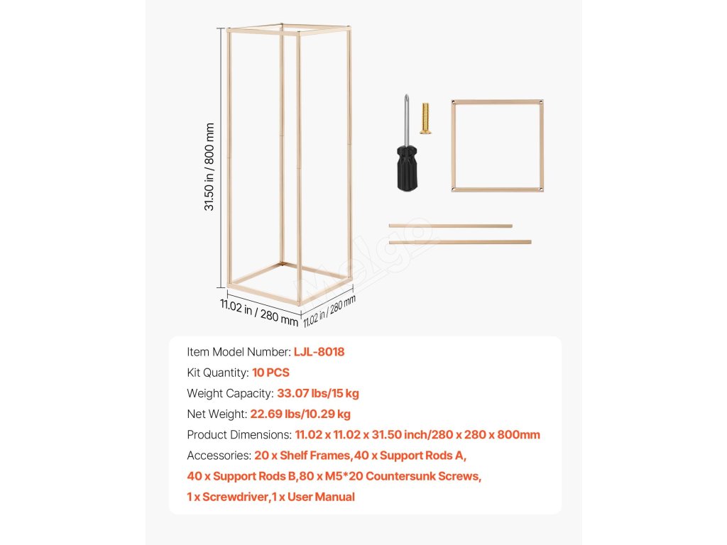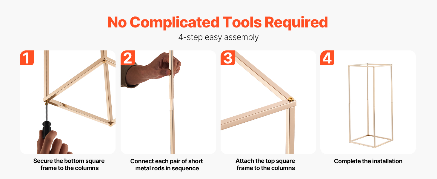 S týmto stĺpovým stojanom na kvety VEVOR môžete montáž dokončiť rýchlo bez potreby zložitého náradia. Jeho jednoduchá konštrukcia zaručuje bezproblémové nastavenie pre začiatočníkov aj skúsených používateľov, vďaka čomu si môžete užívať štýlový a funkčný stojan v priebehu niekoľkých minút.