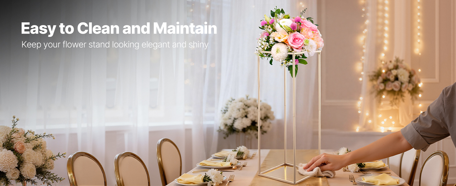 Náš stĺpový stojan na vázy má hladký a jemný povrch, ktorý sa ľahko čistí a udržiava. Či už ho používate denne, alebo pri špeciálnych príležitostiach, jednoducho zotrite prach a nečistoty, aby ste zachovali jeho elegantný vzhľad a trvalý lesk, vďaka čomu bude vaša výzdoba vždy vyzerať dokonale.