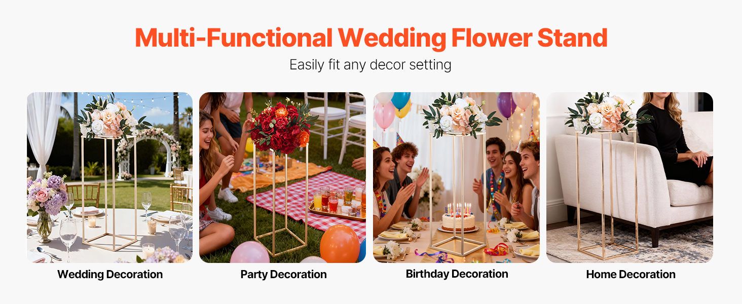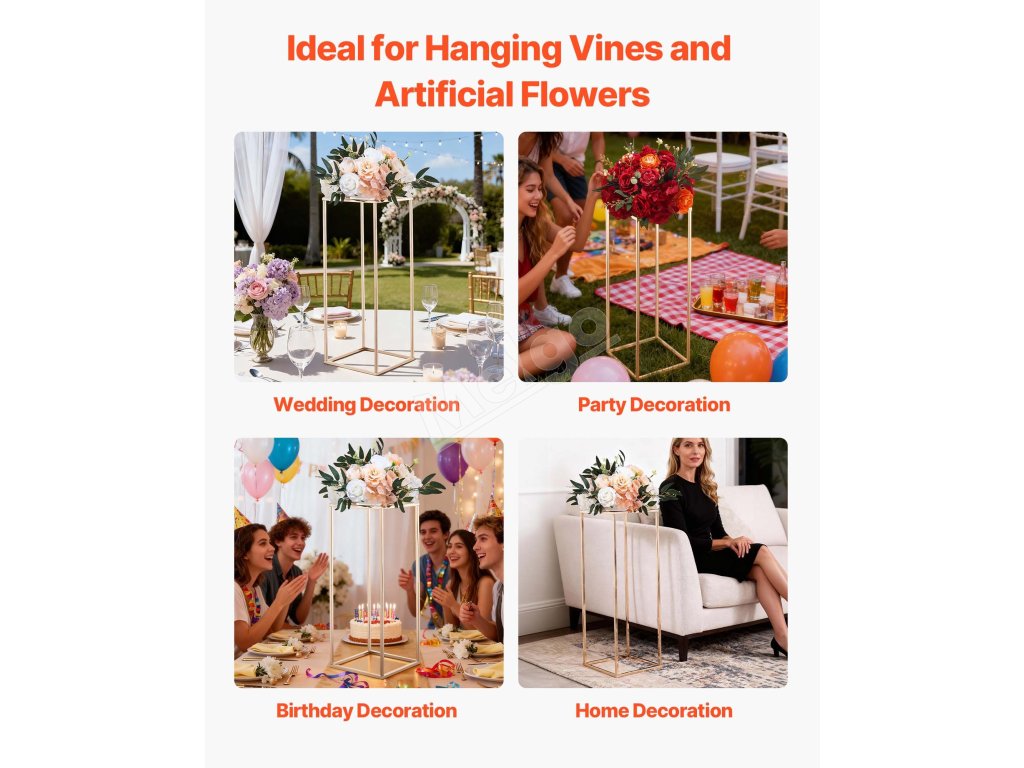 Tento zlatý stojan VEVOR na centrálny kvet sa hodí na rôzne scény, ako sú svadby, večierky, narodeninové oslavy a domáce dekorácie. Vďaka svojmu elegantnému vzhľadu a praktickej funkcii sa hladko začlení do akéhokoľvek dekoračného motívu a poslúži ako vynikajúca voľba na obohatenie vášho obytného priestoru alebo priestoru na podujatie.