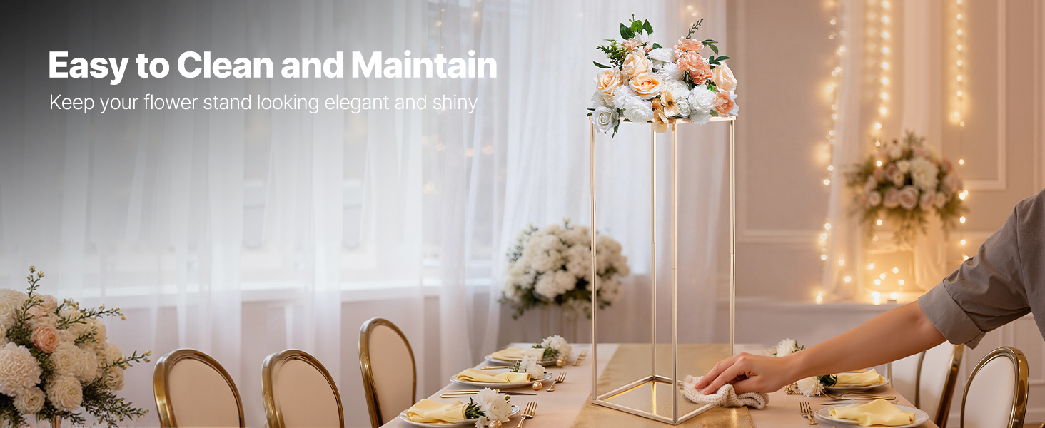 Tento stĺpový stojan na vázy má hladký a jemný povrch, ktorý sa bez námahy čistí a udržiava. Či už ide o každodenné používanie alebo špeciálne udalosti, jednoduchým utretím sa ľahko odstráni prach a škvrny, vďaka čomu stojan vyzerá elegantne a časom si zachováva trvalý lesk.