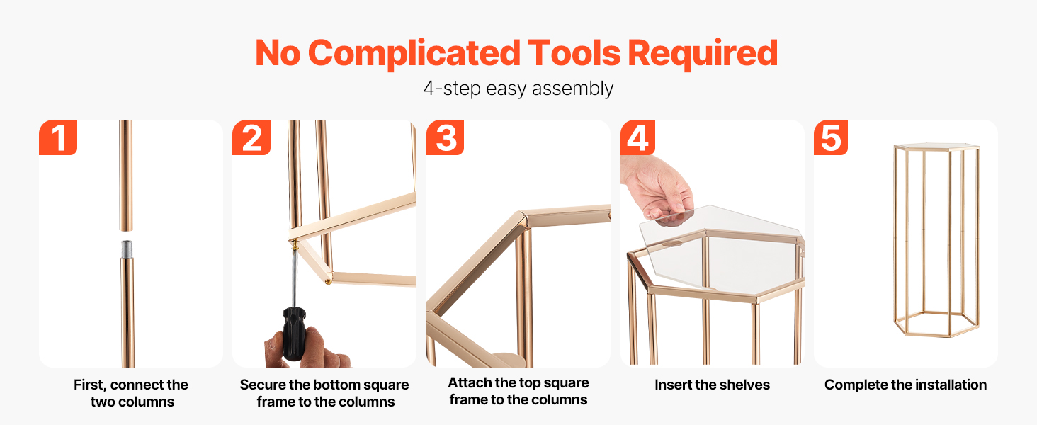 S naším stĺpovým stojanom na kvety nepotrebujete žiadne zložité nástroje. Proces montáže je jednoduchý a priamočiary, dokonca aj pre začiatočníkov, čo vám umožní rýchlo si vychutnať krásu a pohodlie stojana bez plytvania časom alebo energiou.