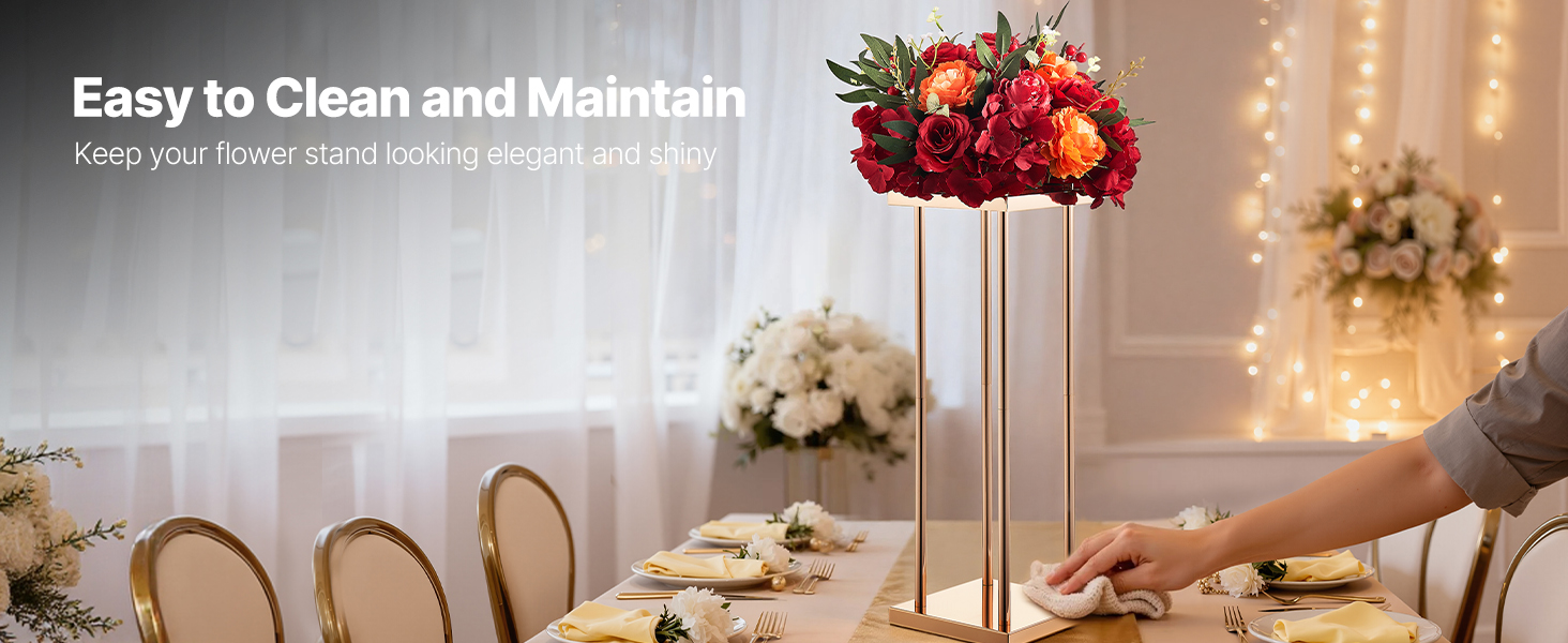 Stĺpový stojan na vázy VEVOR má hladký, jemný povrch, ktorý sa ľahko čistí a udržiava. Či už ide o každodenné používanie alebo špeciálne udalosti, jednoduchým utretím sa odstráni prach a škvrny, vďaka čomu bude stojan časom vyzerať elegantne a lesklo.