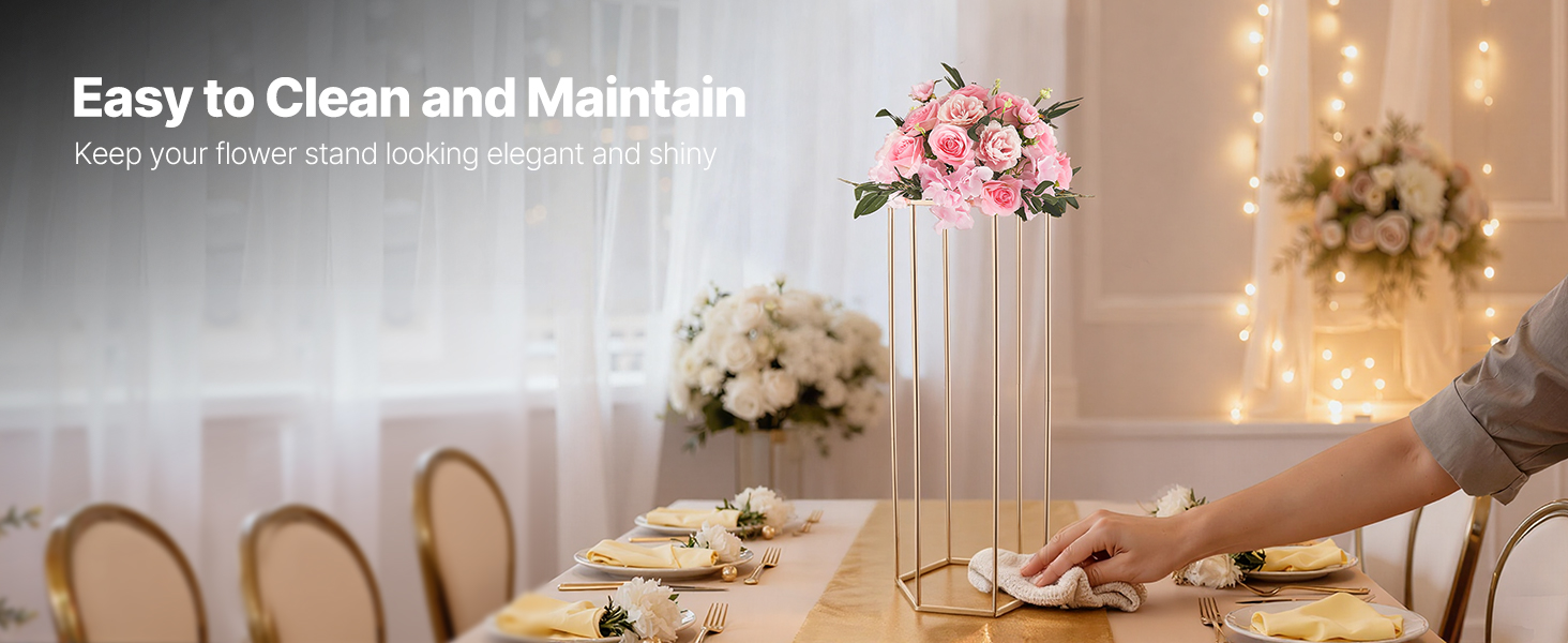 Vďaka hladkému, jemnému povrchu sa tento stĺpový stojan na vázy ľahko čistí a udržiava. Pri každodennom používaní alebo pri špeciálnych príležitostiach ho jednoducho utrite, aby ste odstránili prach a škvrny, a udržujte jeho elegantný vzhľad s dlhotrvajúcim leskom.