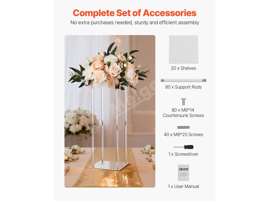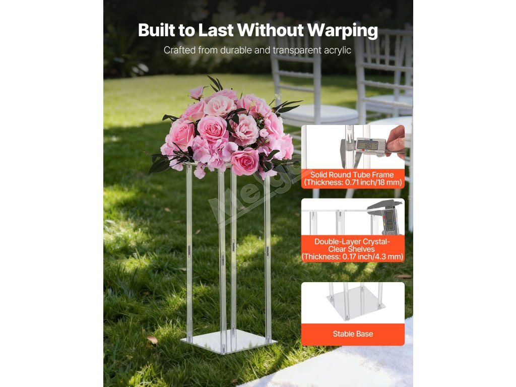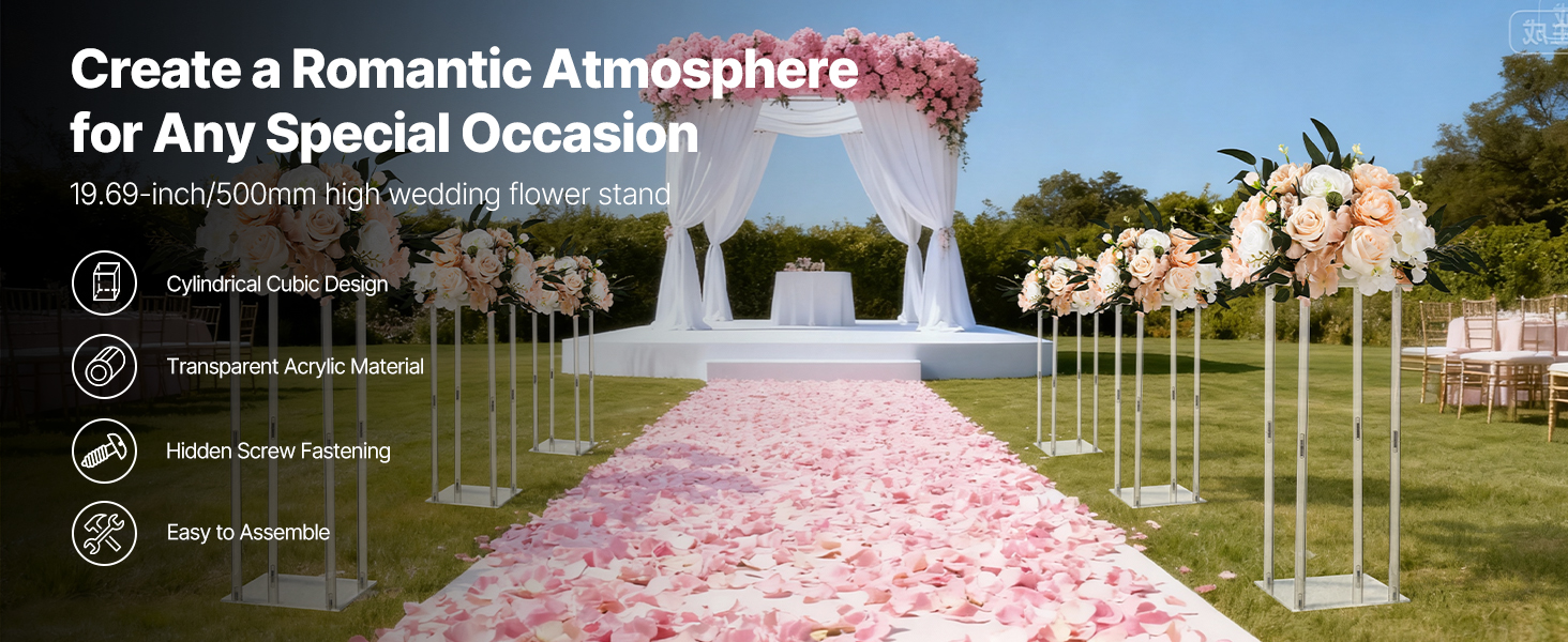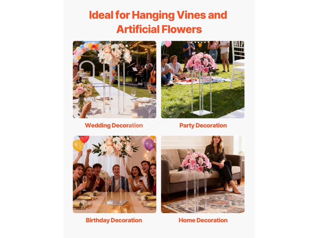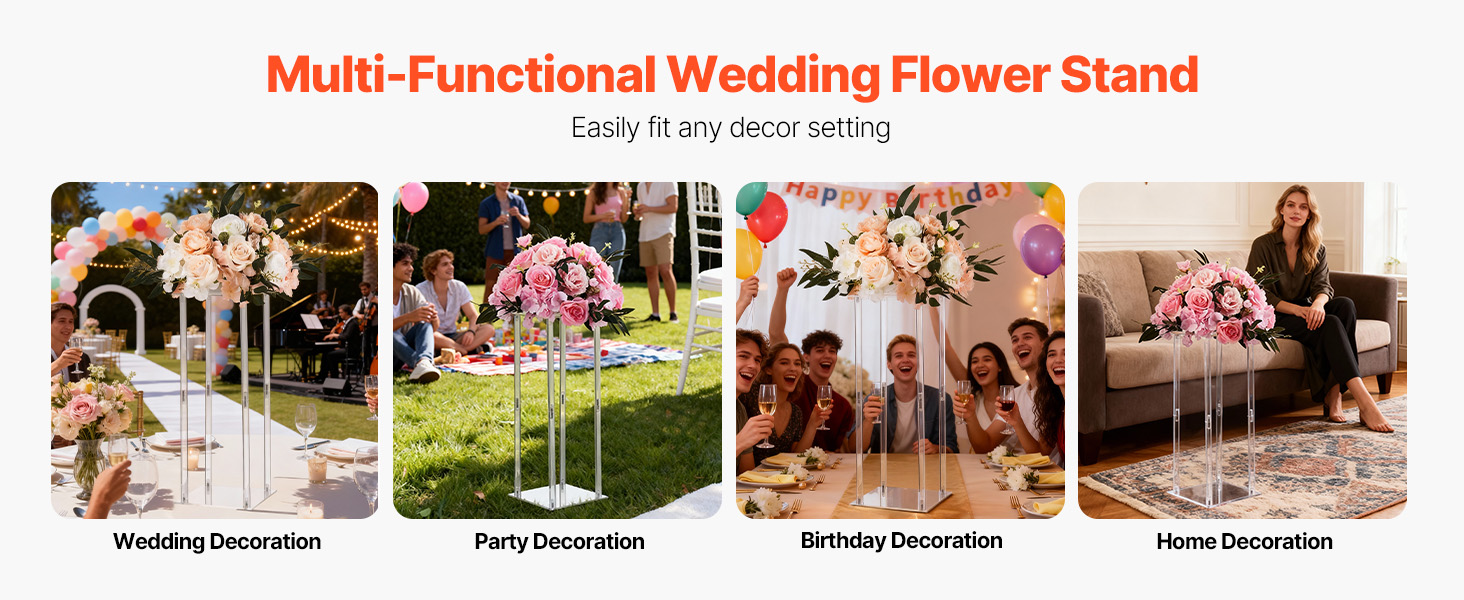 VEVOR stojan na kvetinový stĺp sa ideálne hodí na svadby, večierky, narodeniny a do domáceho prostredia. Vďaka svojmu elegantnému dizajnu a všestrannej funkčnosti sa dokáže hladko začleniť do rôznych štýlov výzdoby, čím zvyšuje vizuálnu príťažlivosť a atmosféru každej scény.