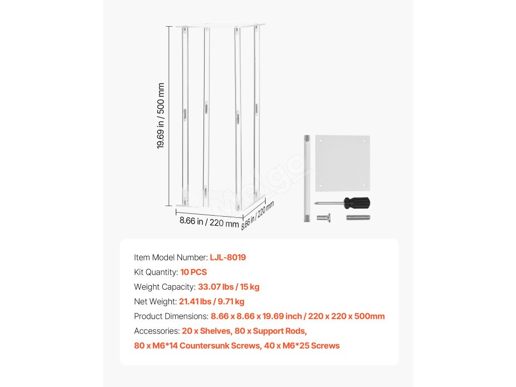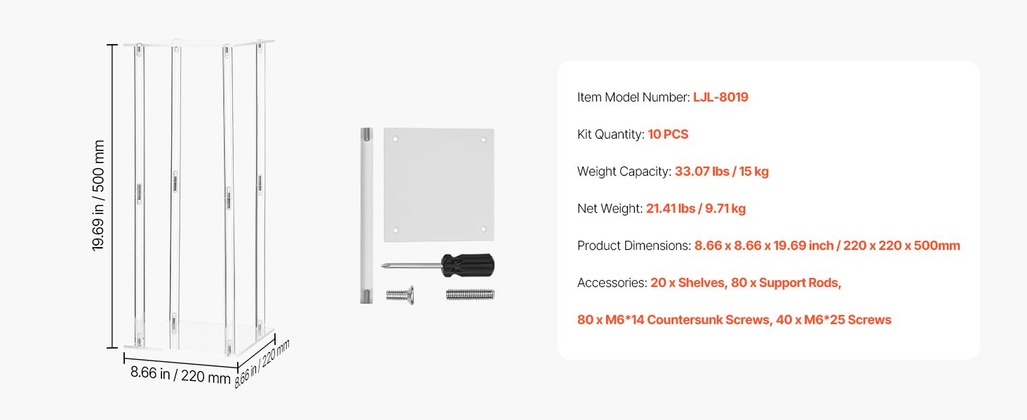 | Rozmery výrobku | 8.66 x 8,66 x 19,69 palca/220 x 220 x 500 mm |