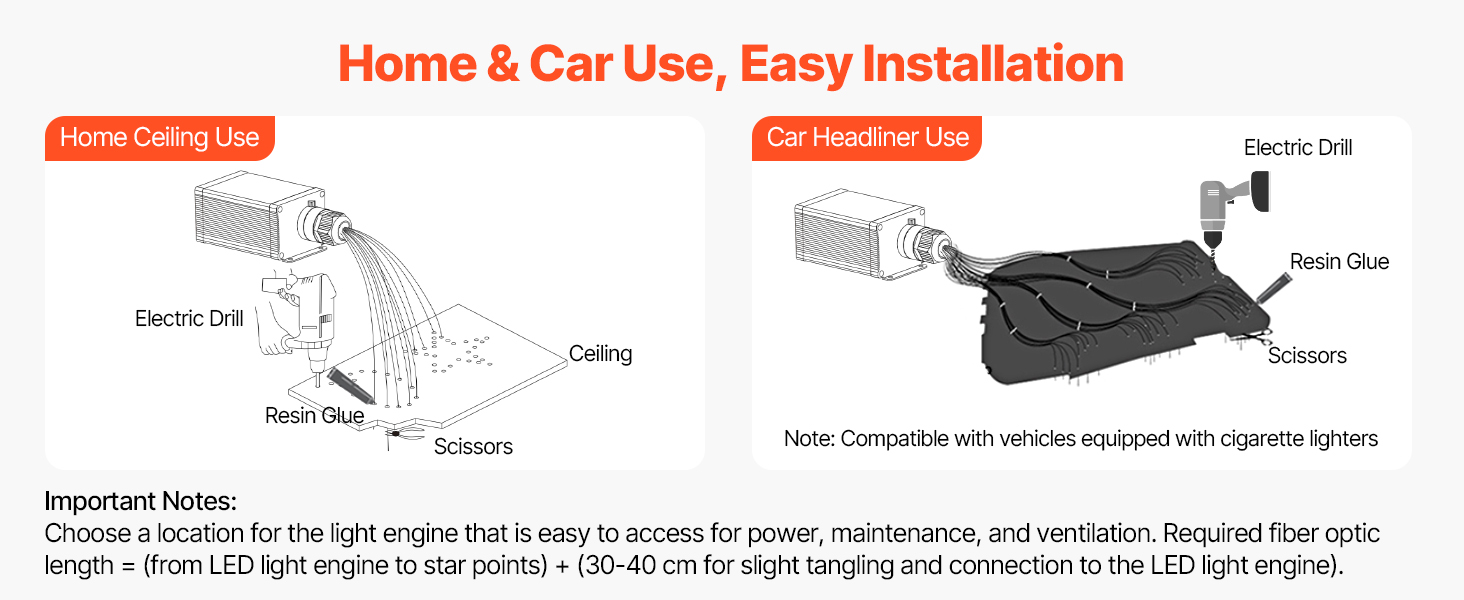 Táto sada stropného osvetlenia hviezdneho neba do auta, navrhnutá pre použitie doma aj v aute, sa ľahko inštaluje a poskytuje vám flexibilitu, aby ste si mohli vychutnať romantickú atmosféru hviezd, kdekoľvek sa nachádzate.