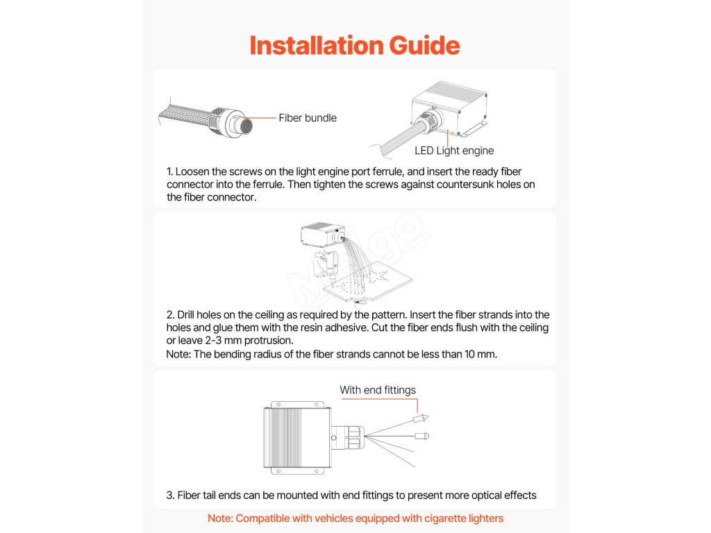 | Množstvo optických vlákien a špecifikácie | 900 ks, 0,03 palca / 0,76 mm, 9,8 stopy / 3 m |