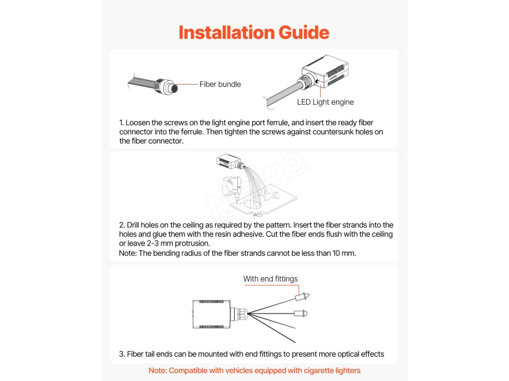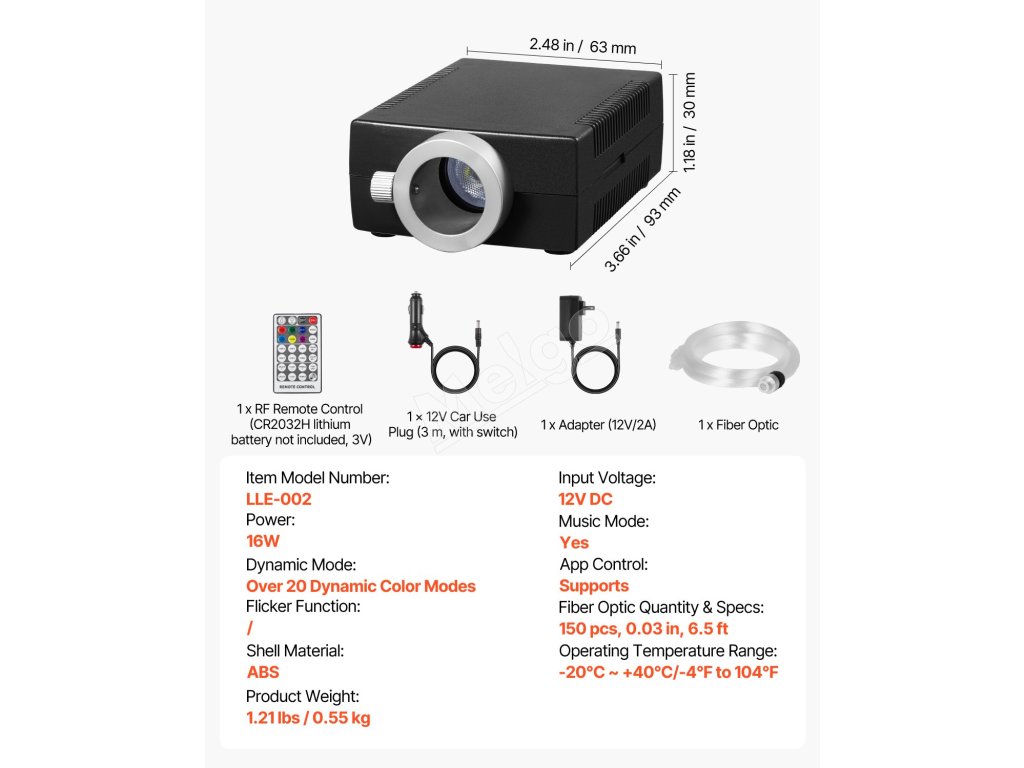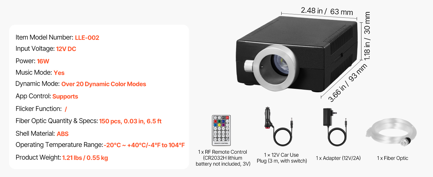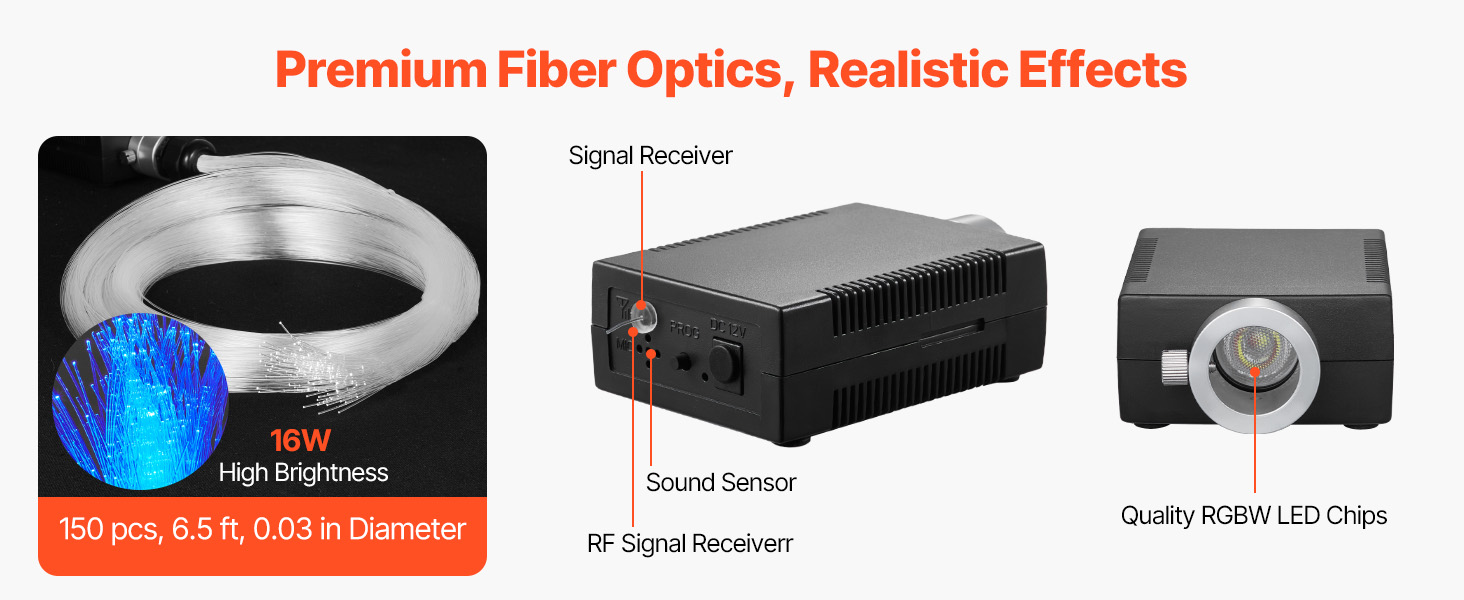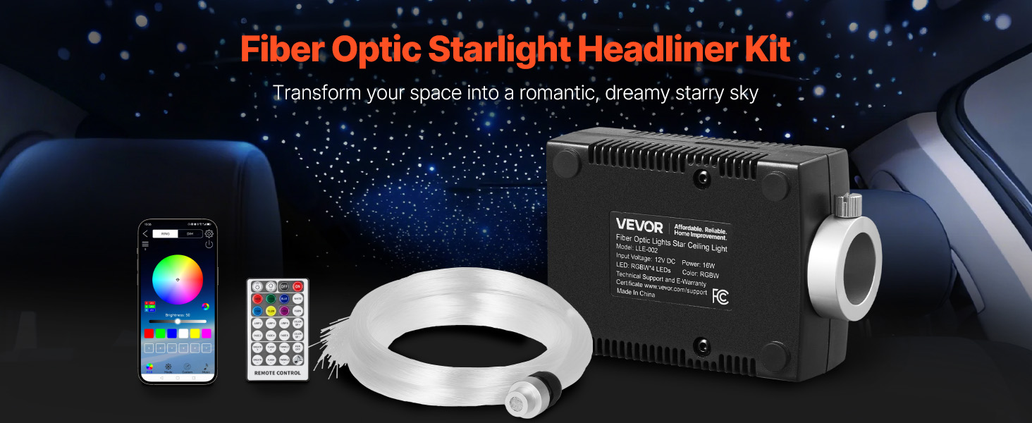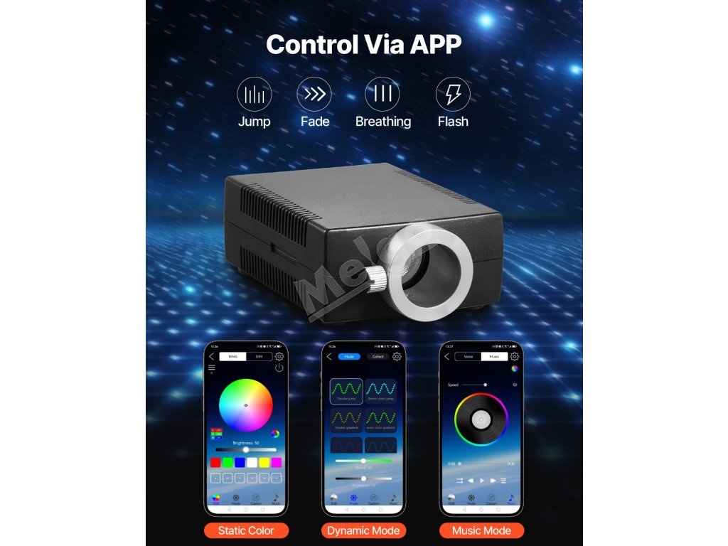 Táto súprava hviezdicového svetlometu podporuje diaľkové ovládanie a ovládanie pomocou aplikácie Bluetooth, vďaka čomu môžete jednoducho prepínať medzi 20 dynamickými farebnými režimami. Vyrobená zo 150 ks 6,5 ft optických káblov a vysoko výkonného svetelného motora vytvára pohlcujúcu atmosféru, ktorá pripomína živú svetelnú šou.