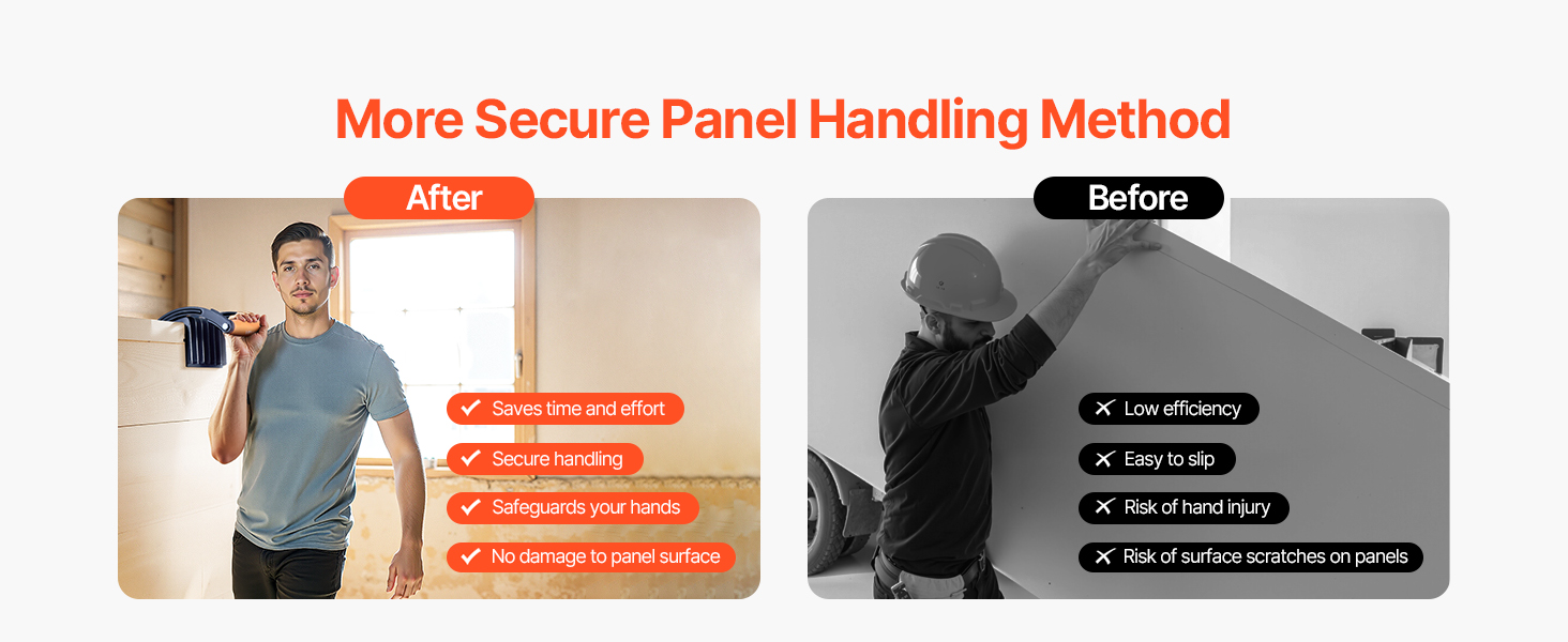 Zabudnite na ťažkosti so zdvíhaním ťažkých predmetov! Vďaka našim nosičom na preglejky je premiestňovanie materiálov rýchle, jednoduché a bezpečné, pričom chráni vaše ruky a panely. Rozlúčte sa s únavnou manuálnou prácou!