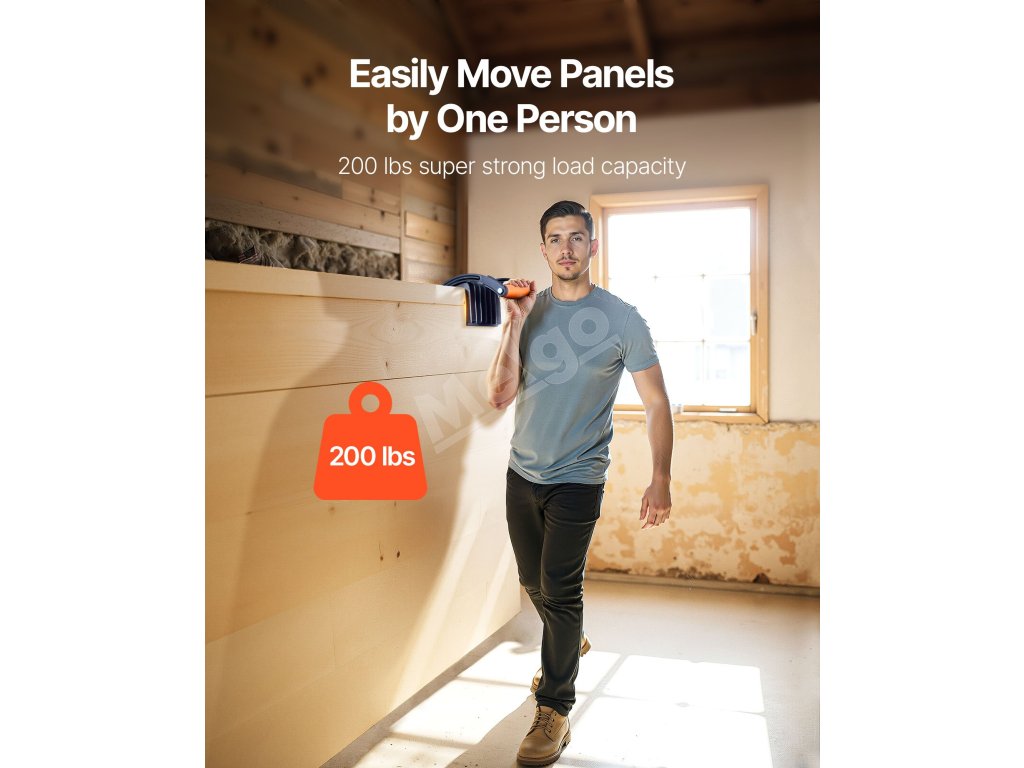Pomocou tohto nosiča panelov ľahko prenesiete panely s hmotnosťou do 200 kg a hrúbkou do 1 palca. Je ideálny na samostatnú prácu, je to váš nástroj na efektívnu a bezpečnú prepravu panelov!