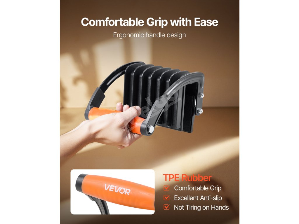 Vďaka gumovým podložkám NBR tento nástroj na nosenie preglejok bezpečne udrží vaše dosky na mieste, zabráni ich skĺznutiu a ochráni vaše povrchy pred poškriabaním. Prenášajte s istotou!