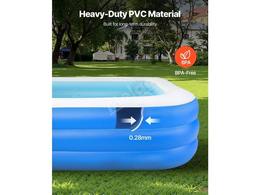 Tento rodinný veľký bazén je vyrobený z vysokokvalitného PVC materiálu, čím sa znižuje riziko škodlivých látok. Je ideálny pre deti a osoby s citlivou pokožkou, rodičom ponúka pokoj, zatiaľ čo deti si užívajú hodiny zábavy.