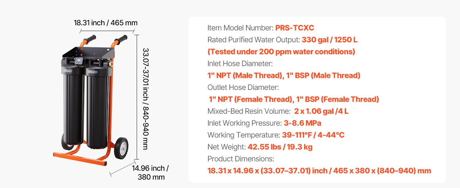 Pri priemerných podmienkach vody s obsahom 200 ppm tento deionizátor vody dodáva až 330 galónov (1250 l) deionizovanej vody pre konzistentné a spoľahlivé umývanie áut bez škvŕn, pričom pomáha chrániť lak vášho vozidla.
