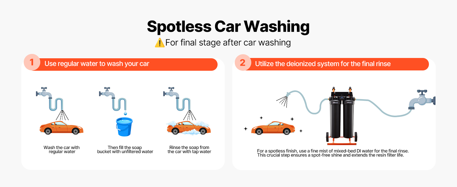 Tento systém deionizovanej vody je skvelým pomocníkom v záverečnej fáze umývania áut, ktorý zabezpečuje bezšpinený výsledok, ktorý umožňuje prirodzené sušenie na vzduchu bez utierania, čím sa proces umývania stáva jednoduchším a efektívnejším.