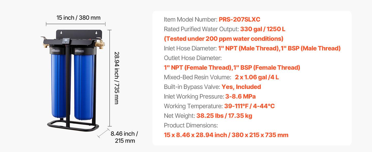Pri priemerných podmienkach vody s obsahom 200 ppm tento deionizátor vody dodáva až 330 galónov (1250 l) deionizovanej vody pre konzistentné a spoľahlivé umývanie áut bez škvŕn, pričom pomáha chrániť lak vášho vozidla.