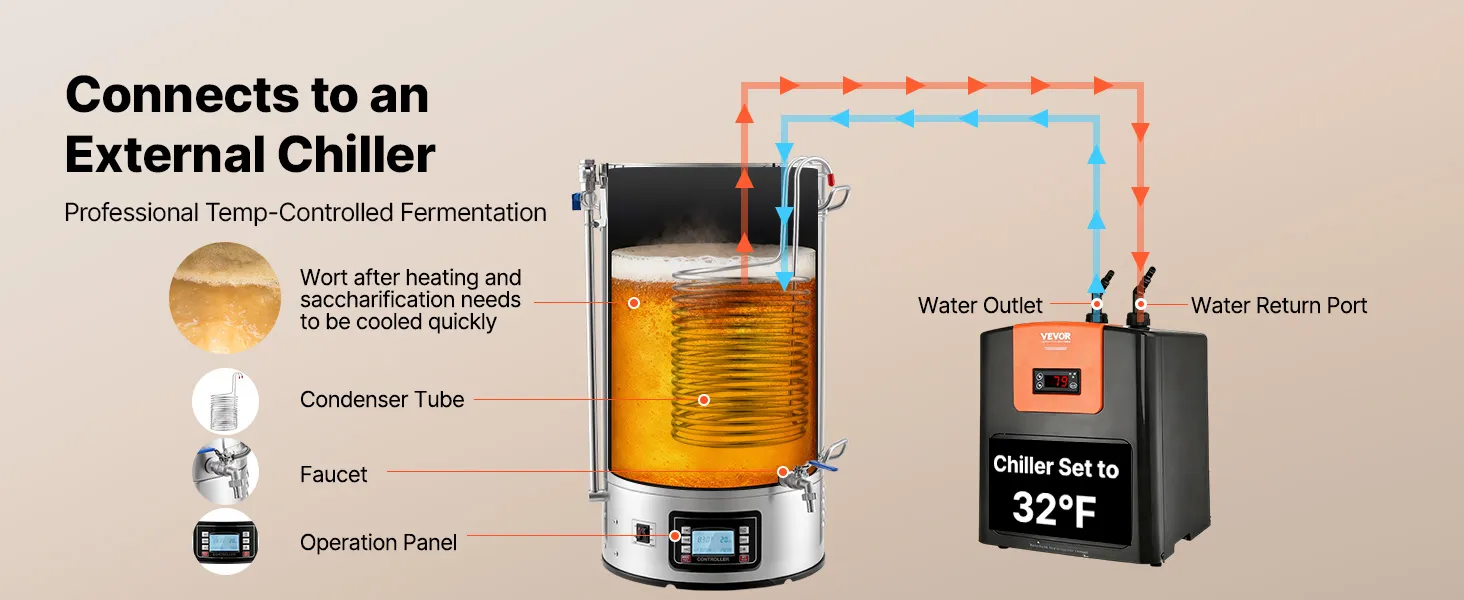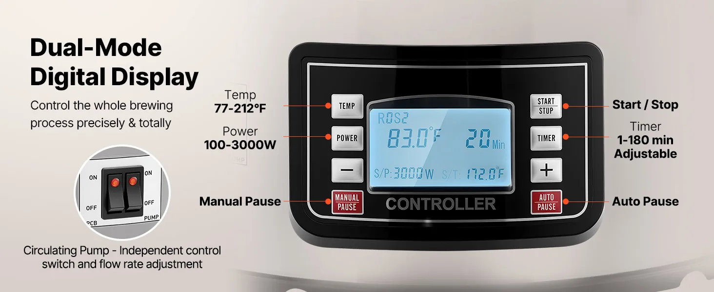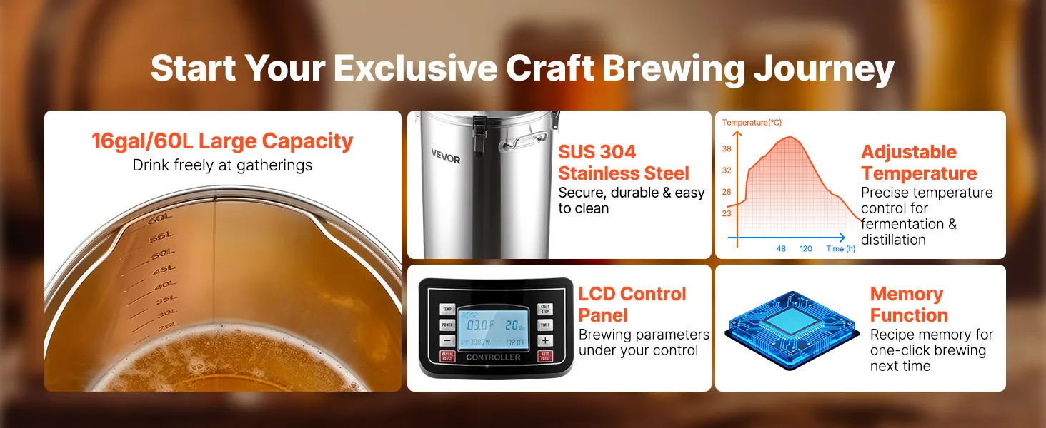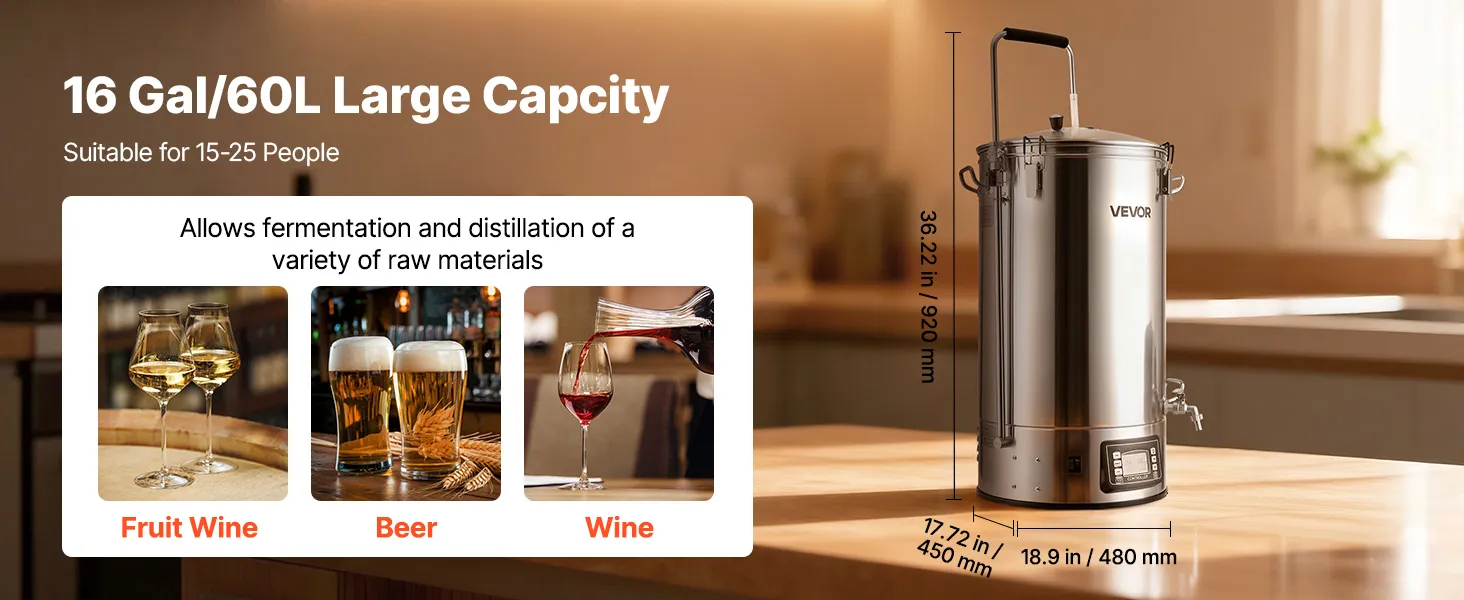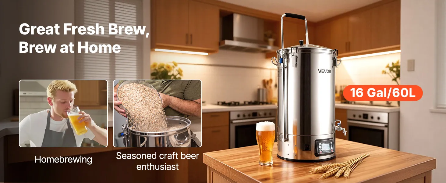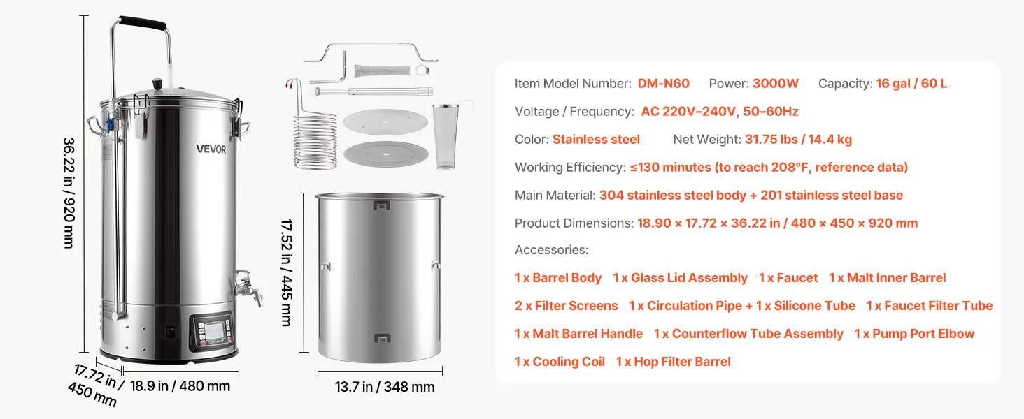 Elektrický varný systém na pivo 16 Gal/60L 3000W 25–100℃ 1–180 min