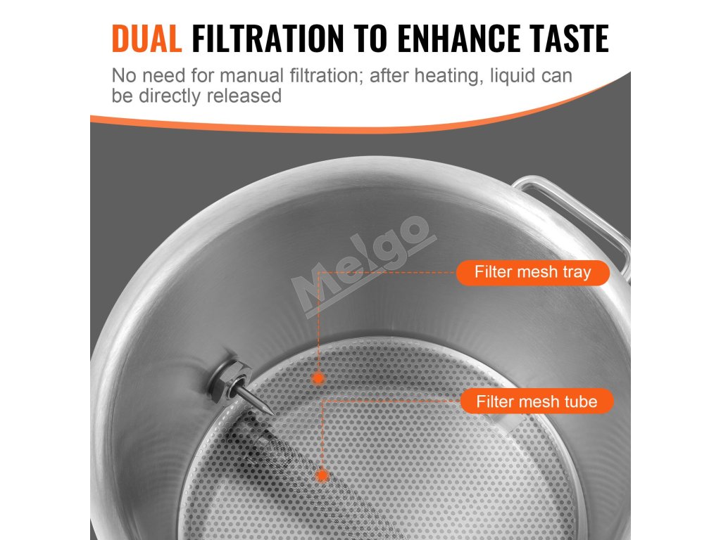 Maximalizujte účinnosť a zvýraznite chuť vďaka dvojitej filtrácii. Nalejte číru tekutinu bez nečistôt bez potreby manuálnej filtrácie. Šetrite čas a námahu a zároveň si vychutnávajte nápoje s bohatou chuťou, ktoré dráždia vaše chuťové poháriky a ponúkajú dokonalý zážitok z varenia.