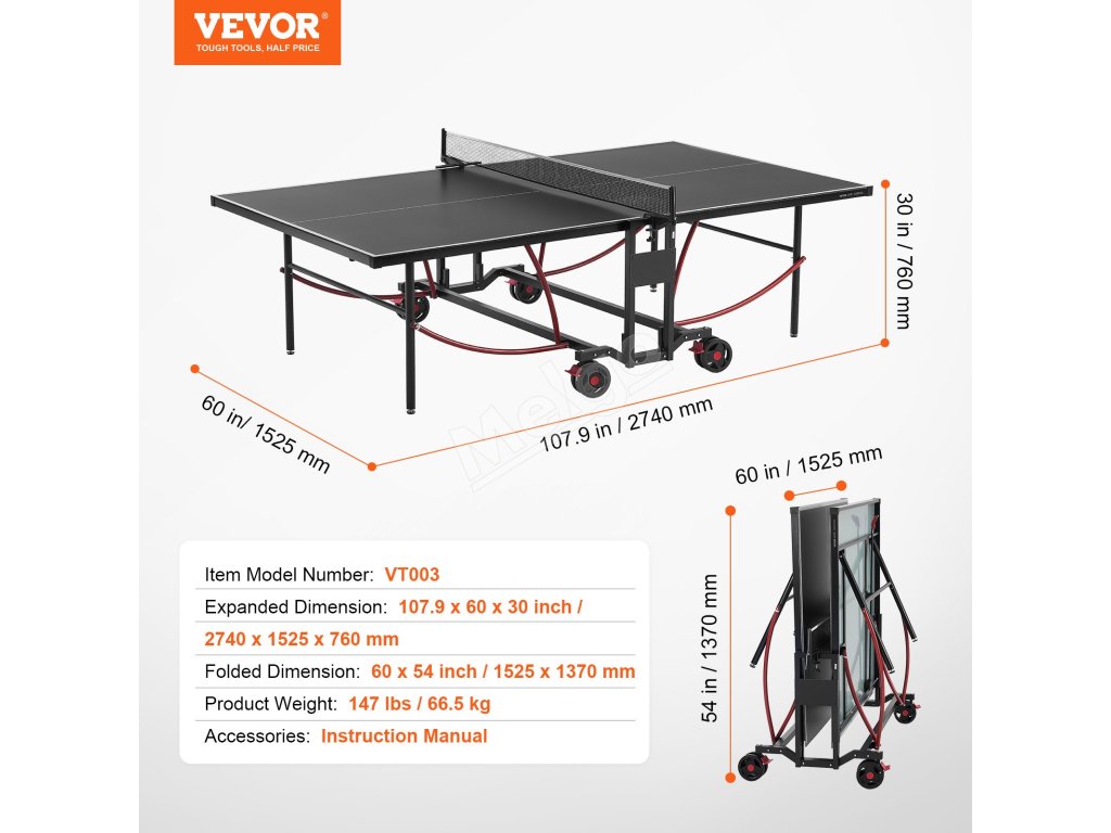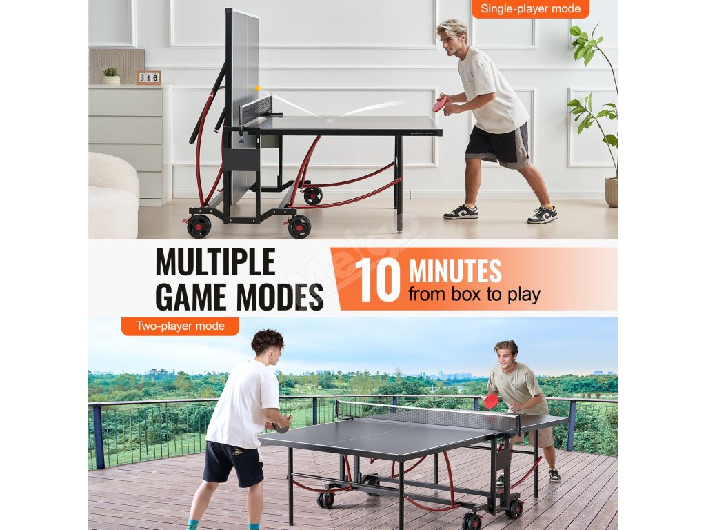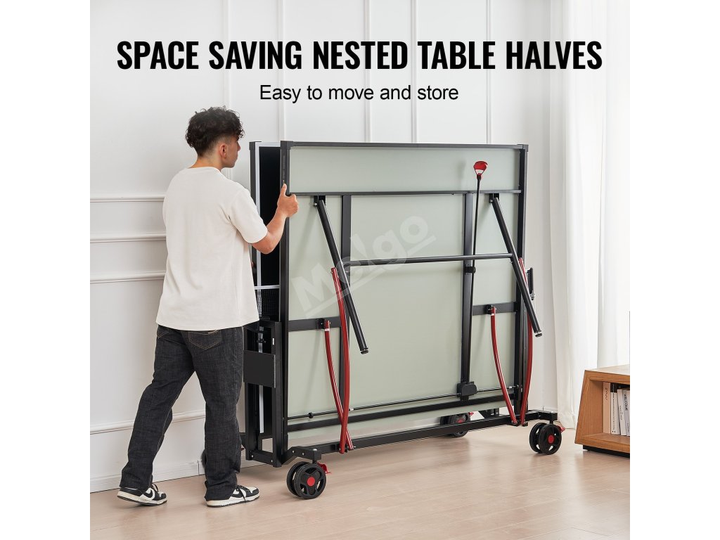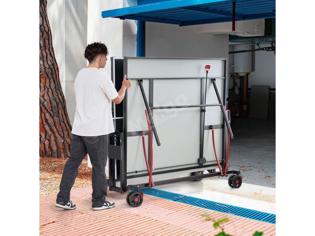 Vnútorný prenosný pingpongový stôl sa dá používať v interiéri aj exteriéri, na kurtoch, večierkoch, stretnutiach atď. Dodáva sa s uzamykateľnými kolieskami na jednoduchú prepravu. Veľké 6-palcové dvojkolesové kolieska s aretáciou uľahčujú prepravu na nerovnom povrchu.