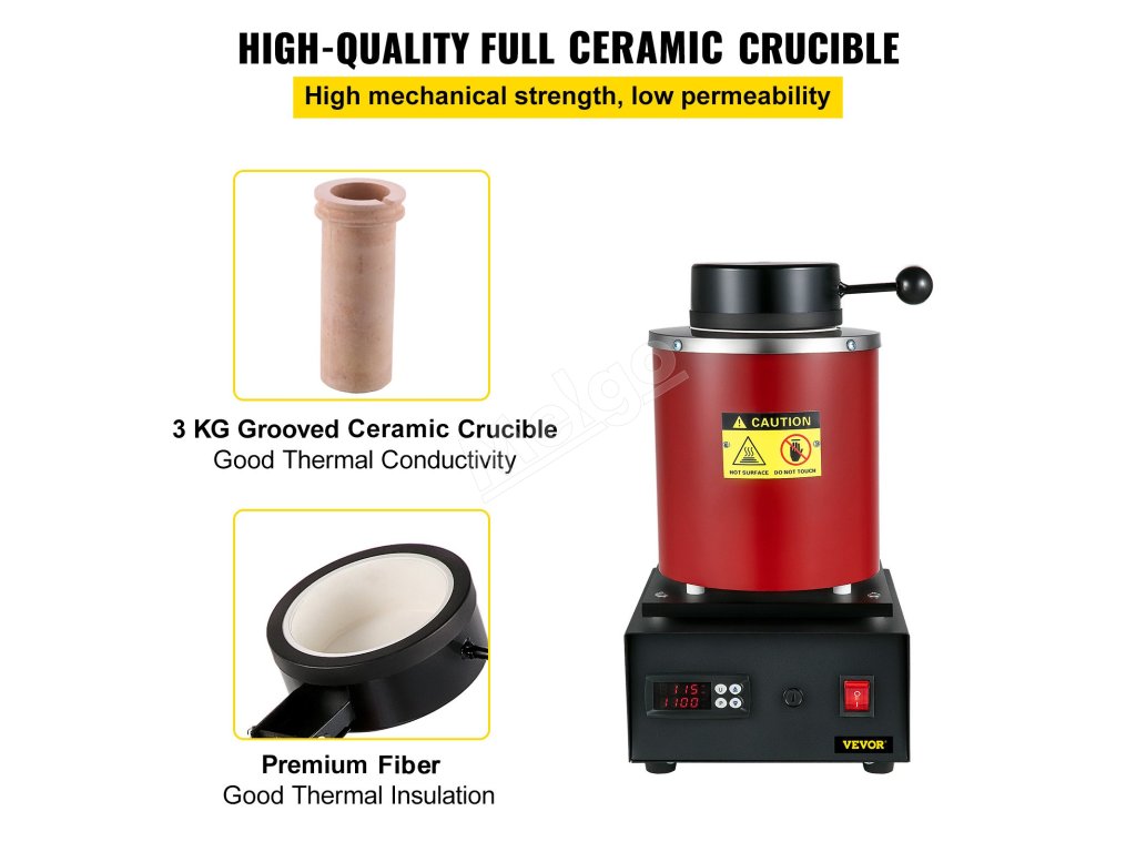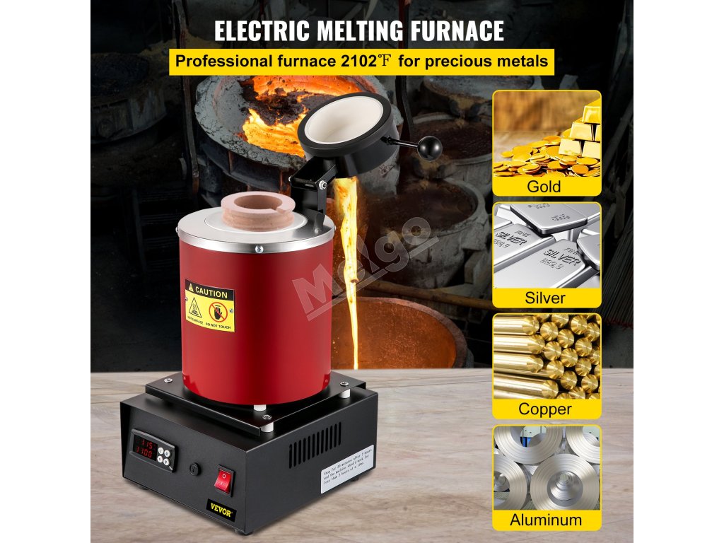 Táto súprava taviacej pece na kovy je ideálnou voľbou na priemyselné a dielenské profesionálne použitie, vhodná na spracovanie zlata, čistého striebra, čistej medi a hliníka.
