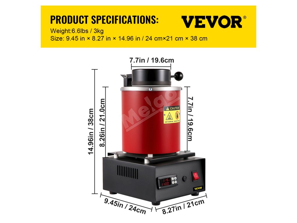 | Vonkajšie rozmery taviaceho téglika (priemer x výška) | 2.95" x 6,7" / 7,5 x 17 cm |