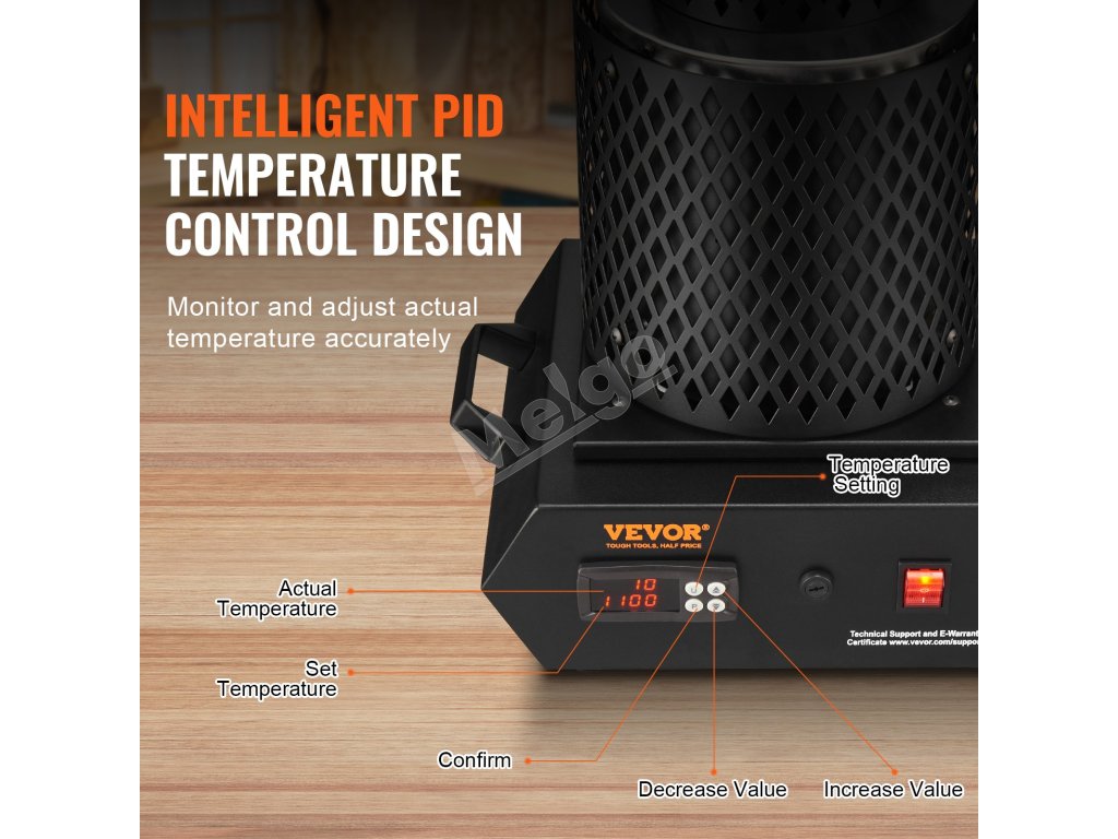 Táto elektrická taviaca pec, navrhnutá s digitálnym riadiacim systémom PID, monitoruje a upravuje teplotu v reálnom čase. Vďaka iba štyrom tlačidlám na ovládacom paneli a prehľadnému digitálnemu LED displeju poskytuje presnú reguláciu teploty aj pre začiatočníkov.