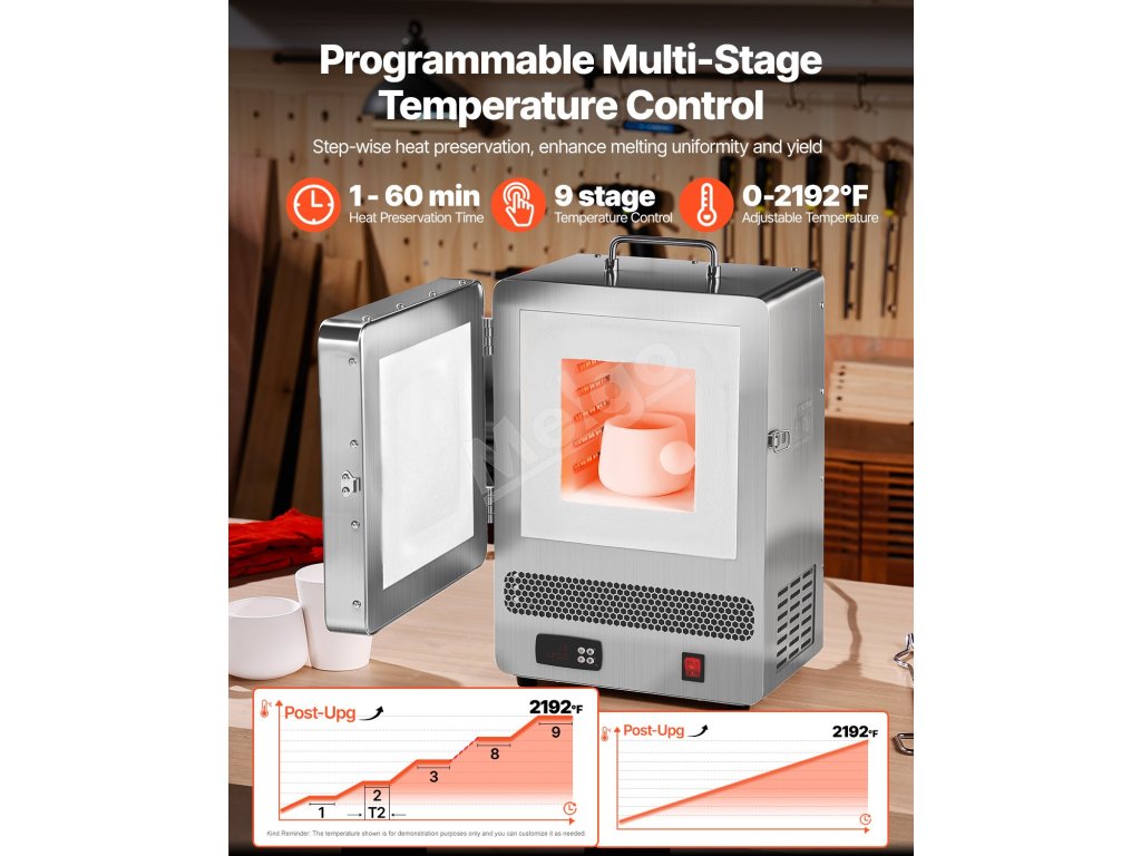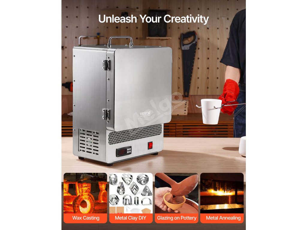 Naša stolová taviaca pec je vyrobená z vysokokvalitných materiálov pre bezpečnosť, stabilitu a prevádzku odolnú voči úniku. Vďaka programovateľnému digitálnemu regulátoru a systému PID poskytuje presnú reguláciu teploty. Vďaka rýchlemu ohrevu je ideálna na profesionálne aj domáce použitie.