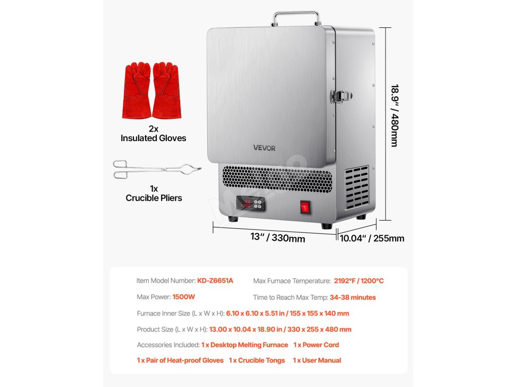 Stolná taviaca pec 1500W, max 2192℉ / 1200℃, nerezová na zlato