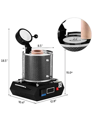 Elektrická taviaca pec s kompaktným dizajnom je ideálna na profesionálne použitie. Táto taviaca pec je vyrobená z vysokokvalitných materiálov, spĺňa priemyselné normy a je vhodná na spracovanie drahých kovov, ako je zlato, striebro a meď.