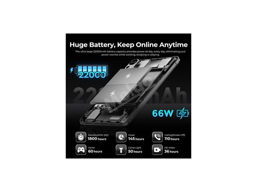 Kapacita batérie 22000 mAh, 66W rýchle nabíjanie, nepretržité napájanie, vďaka ktorému sa nemusíte obávať o výdrž batérie pri práci, štúdiu a zábave.