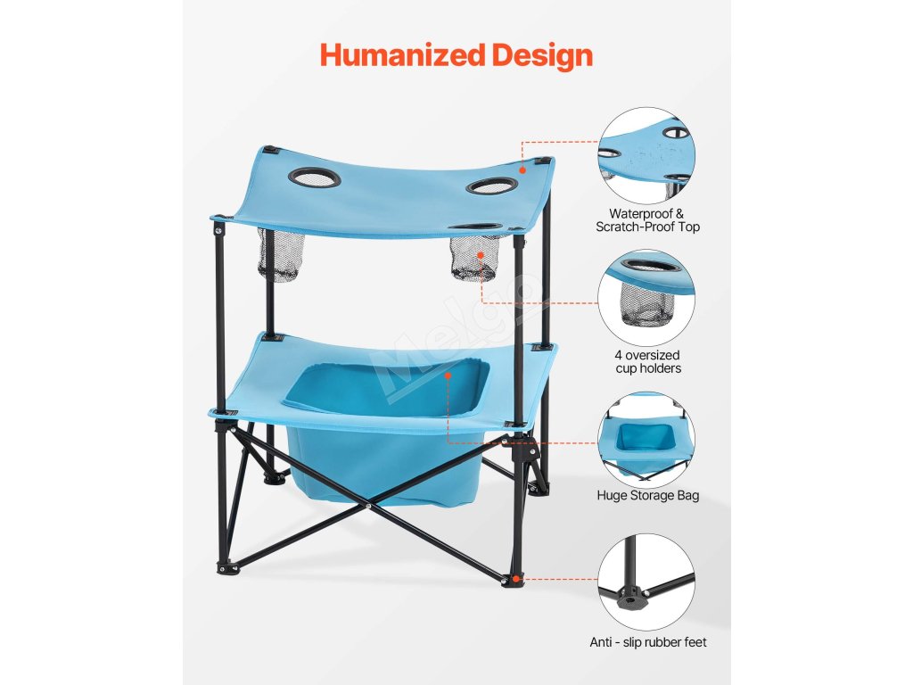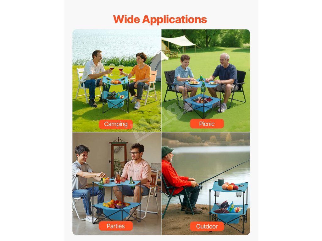 Skladací kempingový stôl 600D oxford nepremokavý, 4 držiaky, taška
