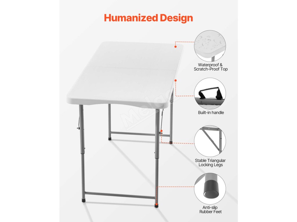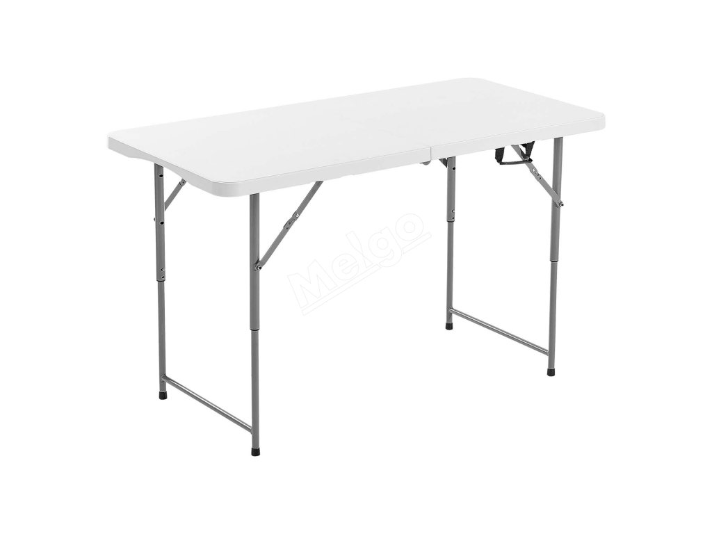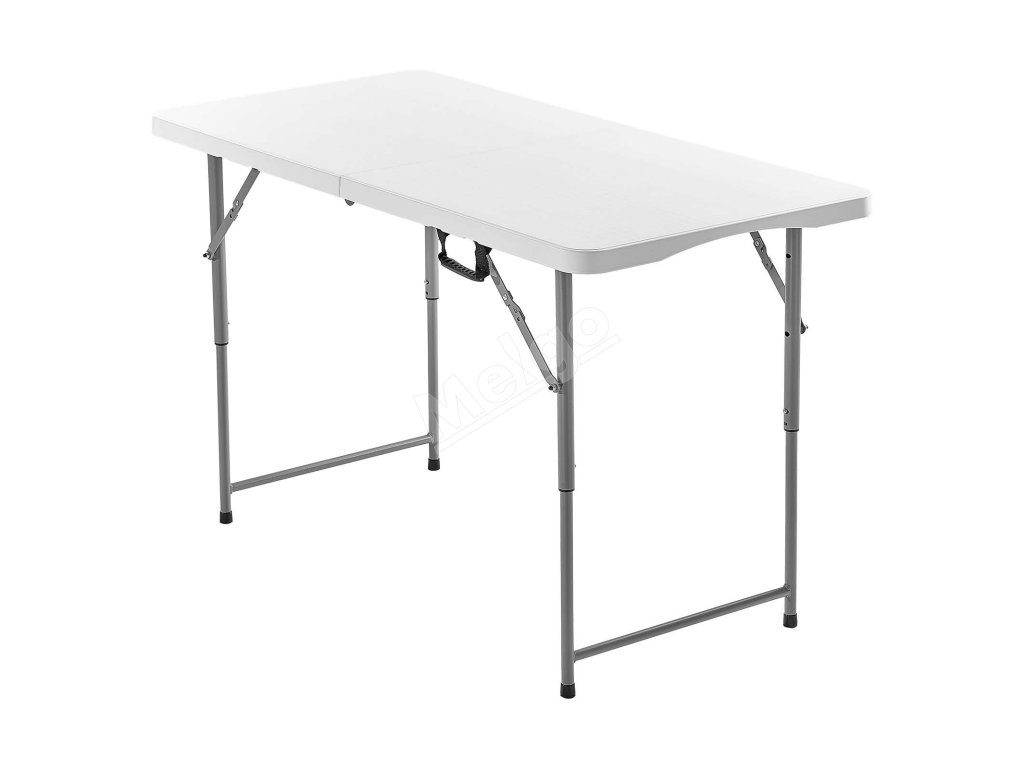 Skladací stôl 4 ft, plastový obdĺžnikový, nastaviteľná výška, biely