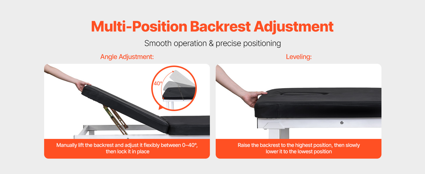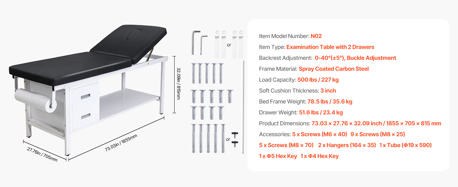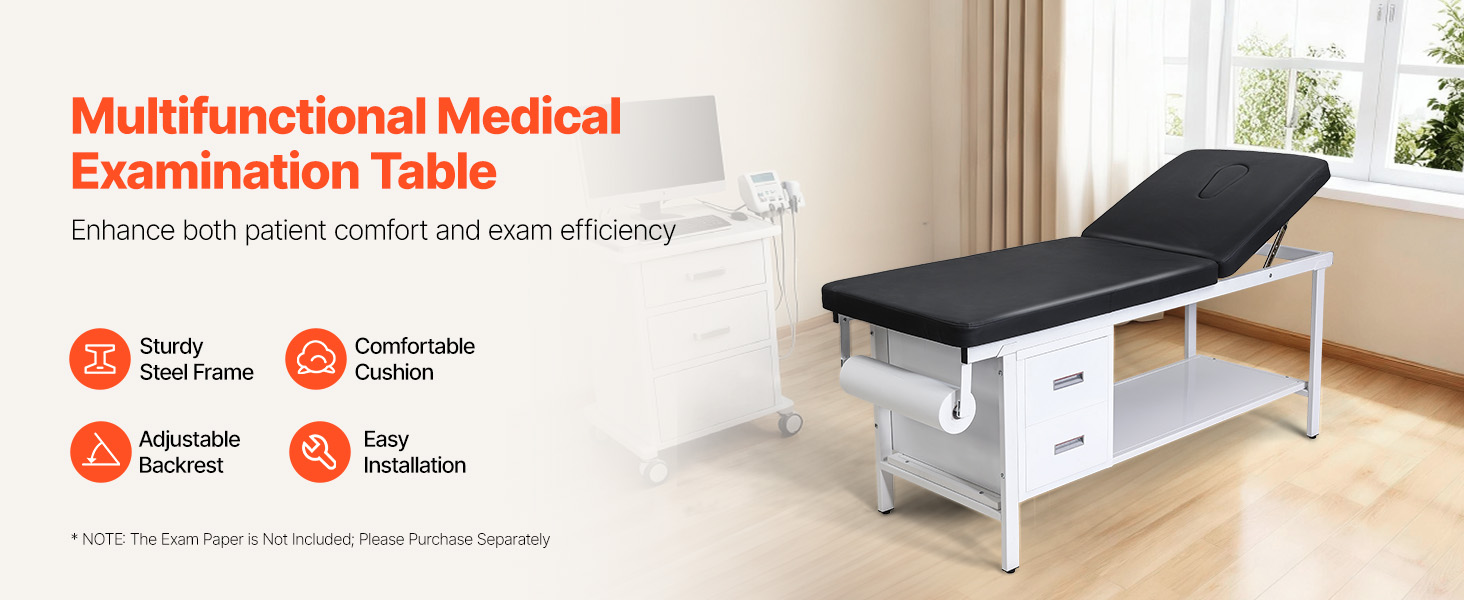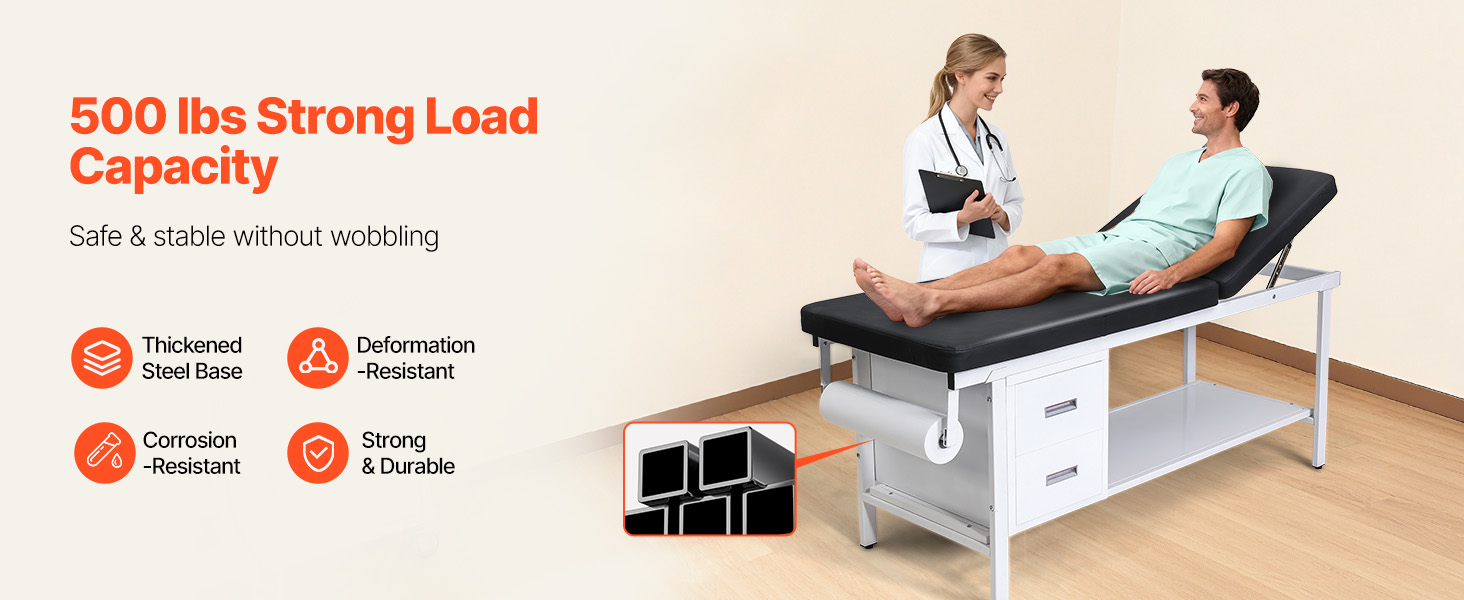 Tento lekársky vyšetrovací stôl má zosilnený oceľový rám, 3-palcový penový vankúš s vysokou hustotou a operadlo nastaviteľné v uhle 0°-40° pre optimálnu oporu. Veľké pohodlie mu dodávajú 2 zásuvky, spodná odkladacia polička a držiak na papierové rolky, vďaka čomu je ideálny pre kliniky, rehabilitačné centrá a kozmetické štúdiá.