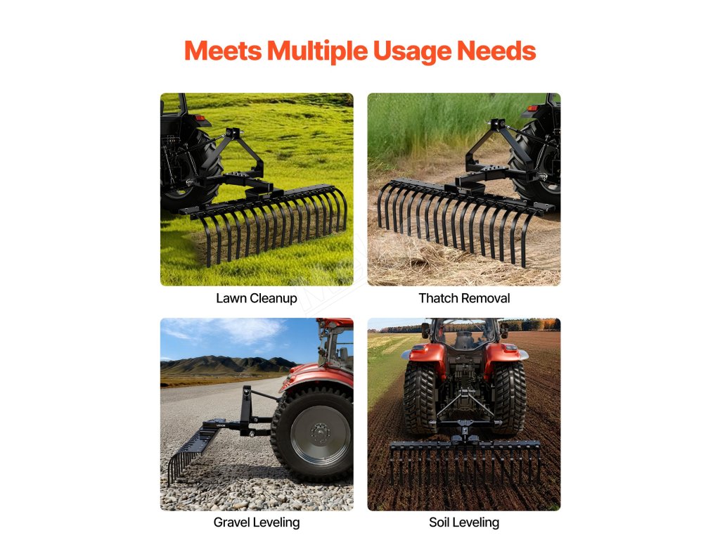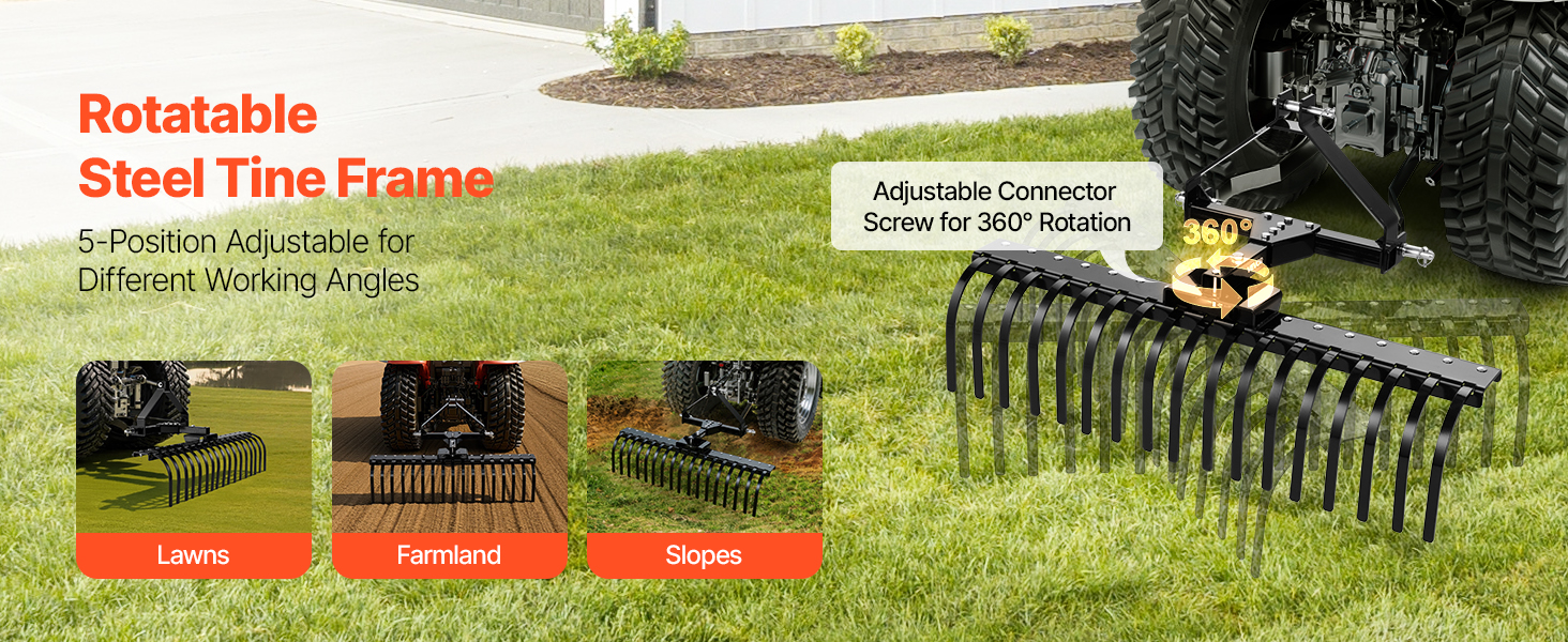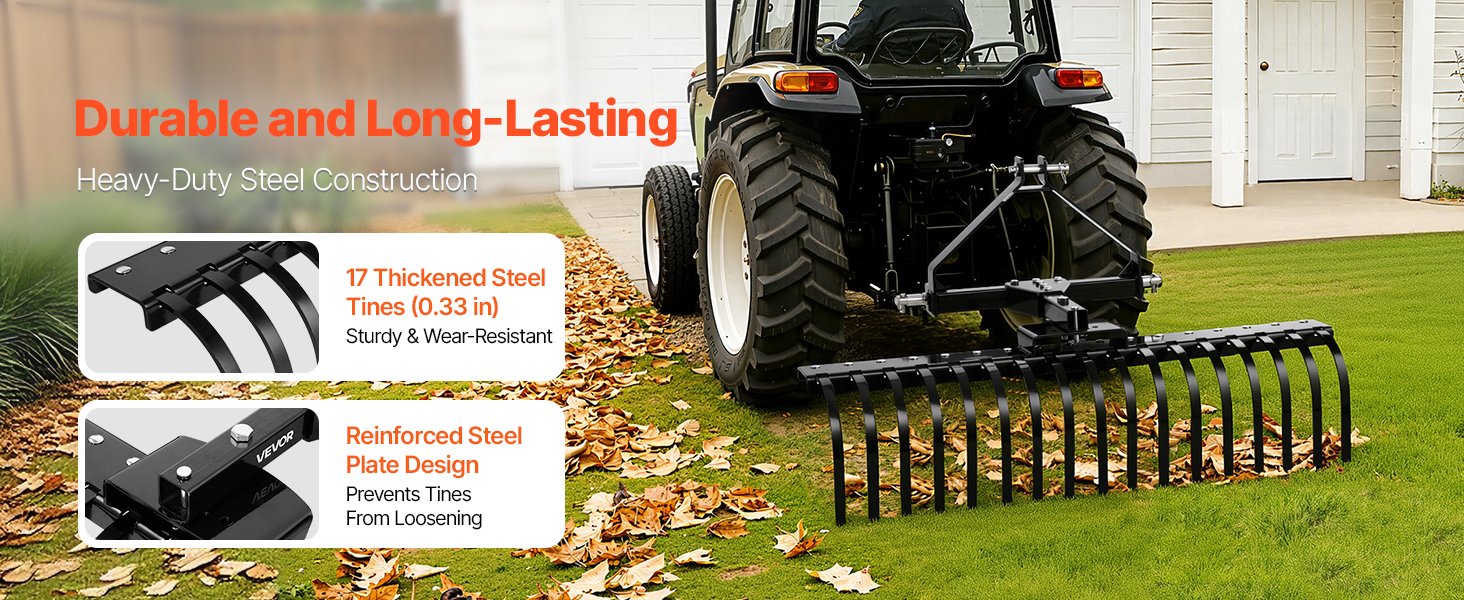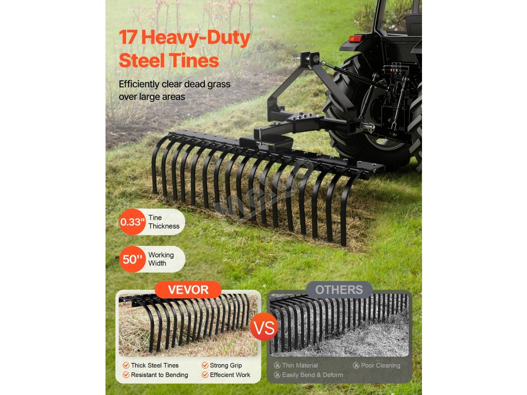 Naše ťažné hrable na vertikutáciu sú vybavené odolnou konštrukciou s trojbodovým závesom a vystuženými spojkami, ktoré udržujú oceľové hroty pevne v kontakte so zemou a poskytujú silnú trakciu pre efektívne odstraňovanie buriny a plsti.