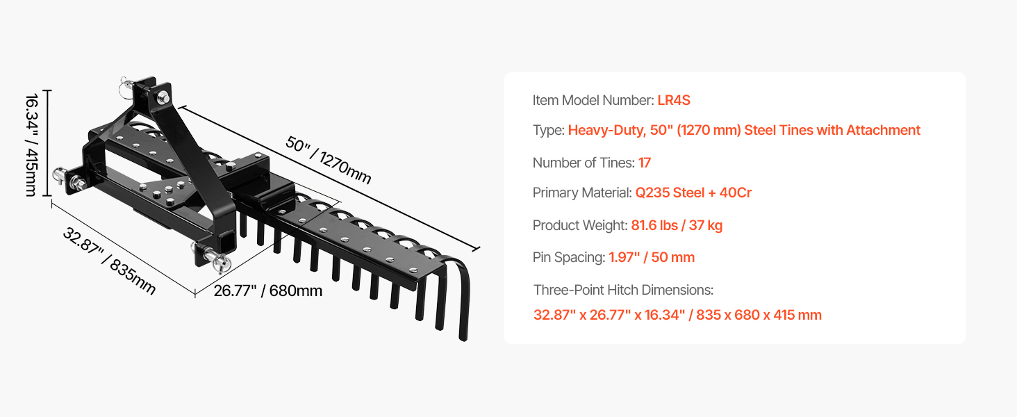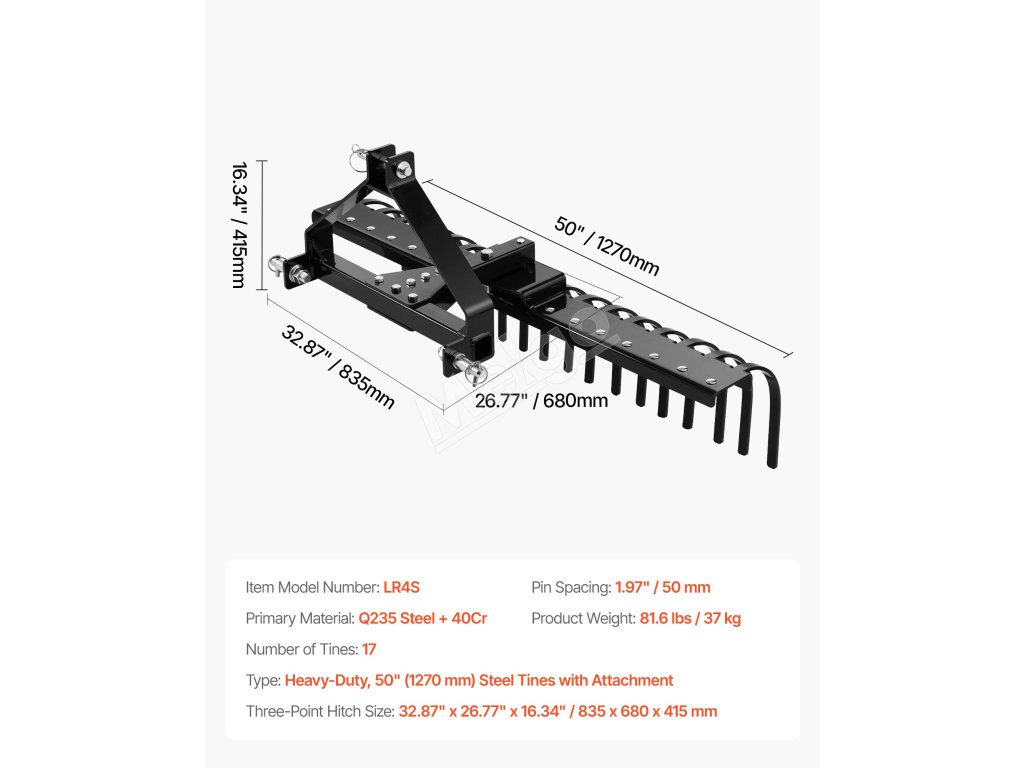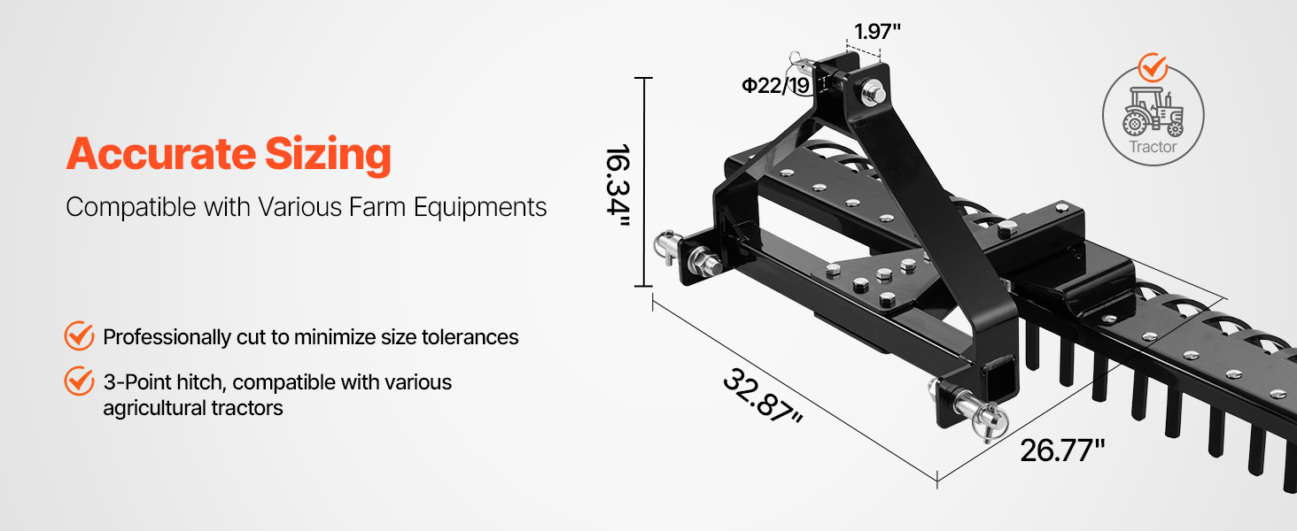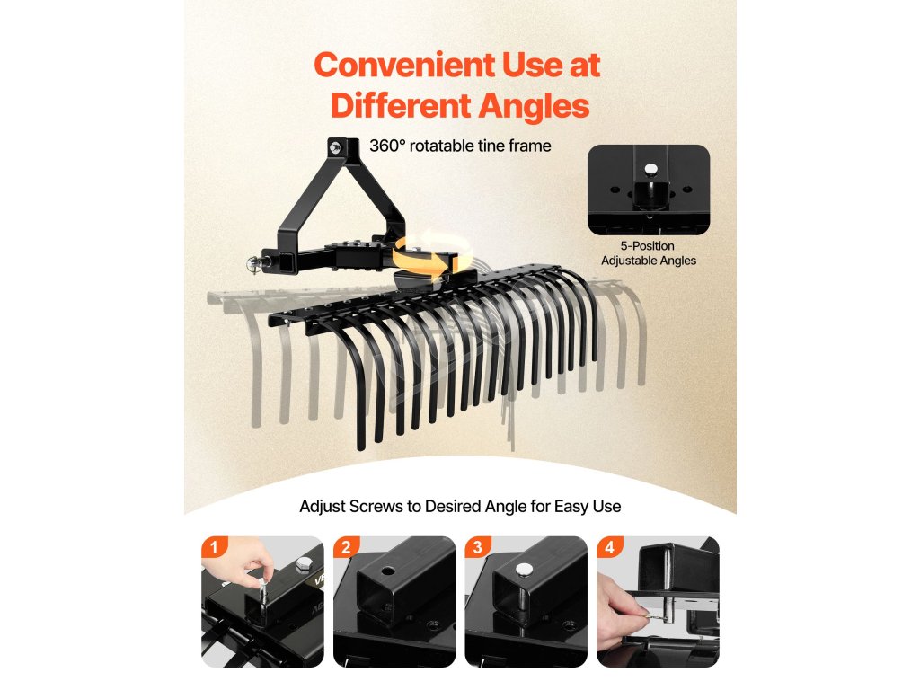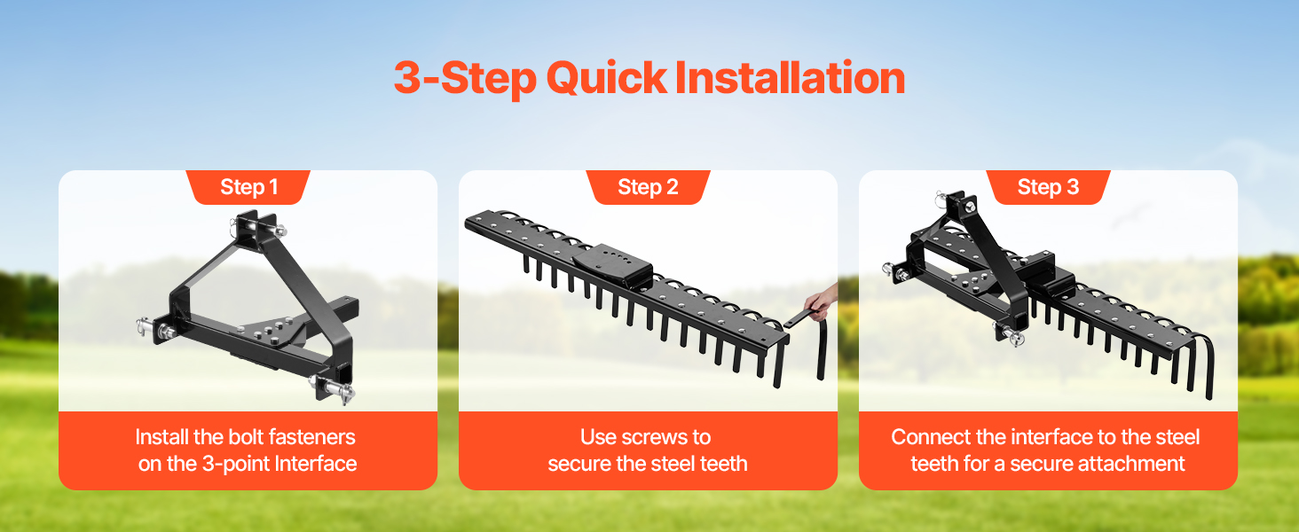 Tento záhradný hrabací stroj je vybavený štandardným 3-bodovým závesom, ktorý zaručuje širokú kompatibilitu s rôznymi traktormi a bezproblémové pripojenie.