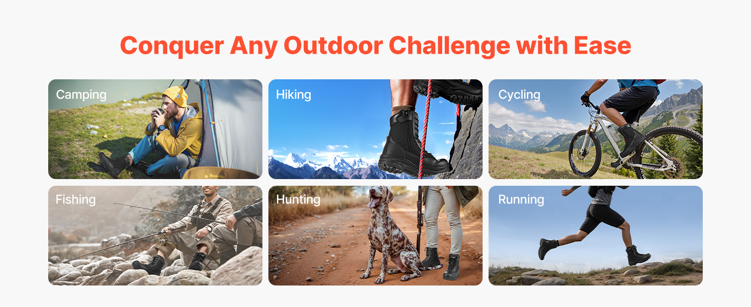 Tieto topánky, vhodné na kempovanie, turistiku, cyklistiku alebo lov, zvládnu širokú škálu outdoorových potrieb a poskytujú pevnú oporu a ochranu pri každom prieskume a výzve v prírode.