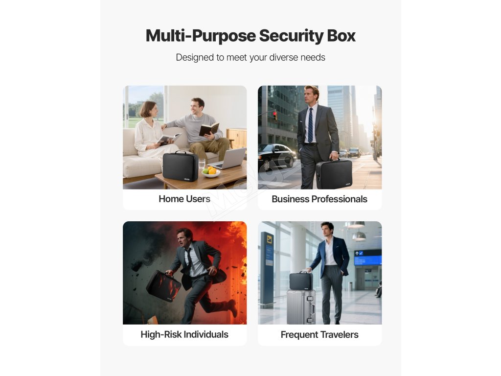 Či už ukladáte dokumenty doma, uchovávate súbory v kancelárii, beriete cennosti na cesty alebo ich používate v aute, ľahko sa prispôsobí a ponúka pohodlný prístup kedykoľvek a kdekoľvek.