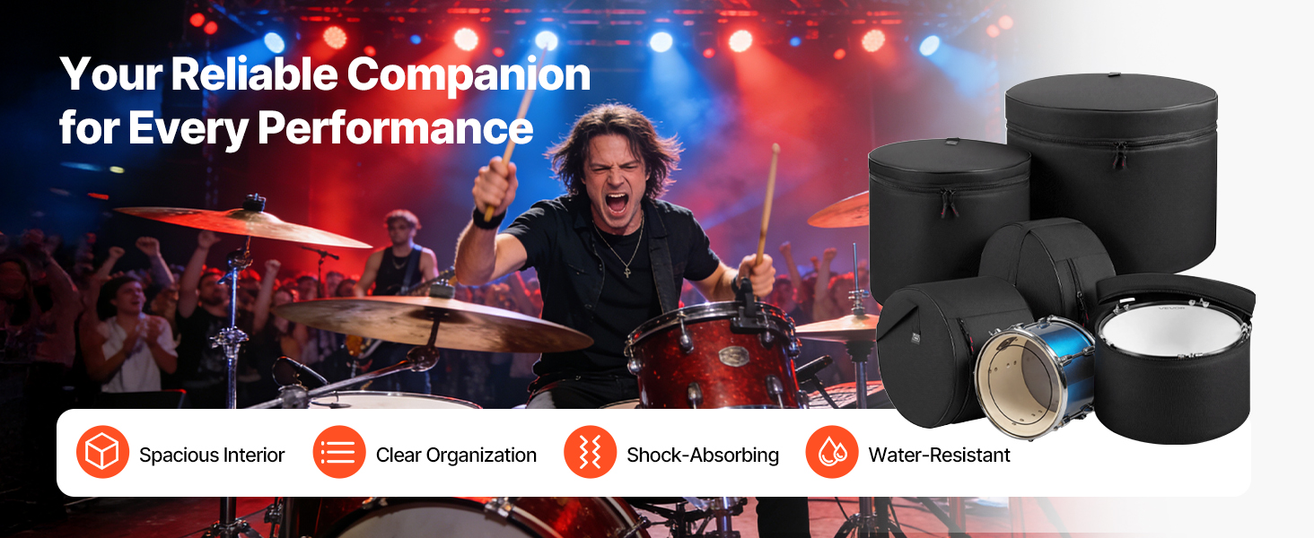 Táto sada tašiek na bubny má dobre navrhnutú konštrukciu s dostatočnou kapacitou a prehľadnými priehradkami. Je odolná voči nárazom a vode, čo z nej robí ideálneho spoločníka na vaše vystúpenia na cestách.
