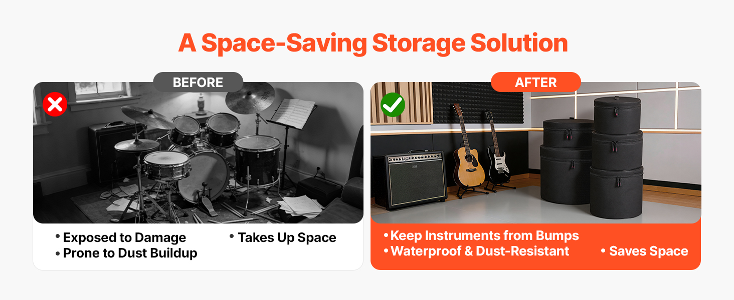 Tieto tašky a puzdrá na bicie sú pohodlné na prepravu a skladovanie a ľahko sa zmestia do kufra vášho auta.