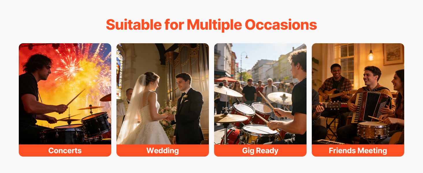 Tento obal na bicie je ideálny na koncerty, svadby, vystúpenia alebo stretnutia s priateľmi a hodí sa na rôzne príležitosti.