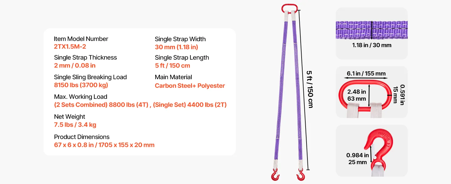 | Prietržné zaťaženie jedného popruhu | 8150 libier (3700 kg) |
