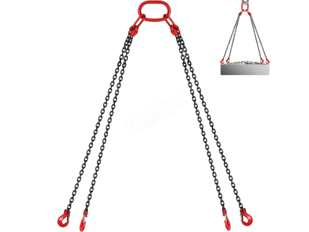Táto zdvíhacia reťaz je vybavená pružinovým jazykom na bezpečné zdvíhanie predmetov. Dĺžku reťaze je možné ľahko nastaviť tak, aby vyhovovala závažiam s rôznym objemom.
