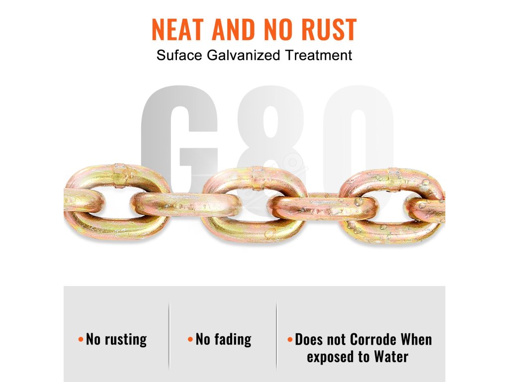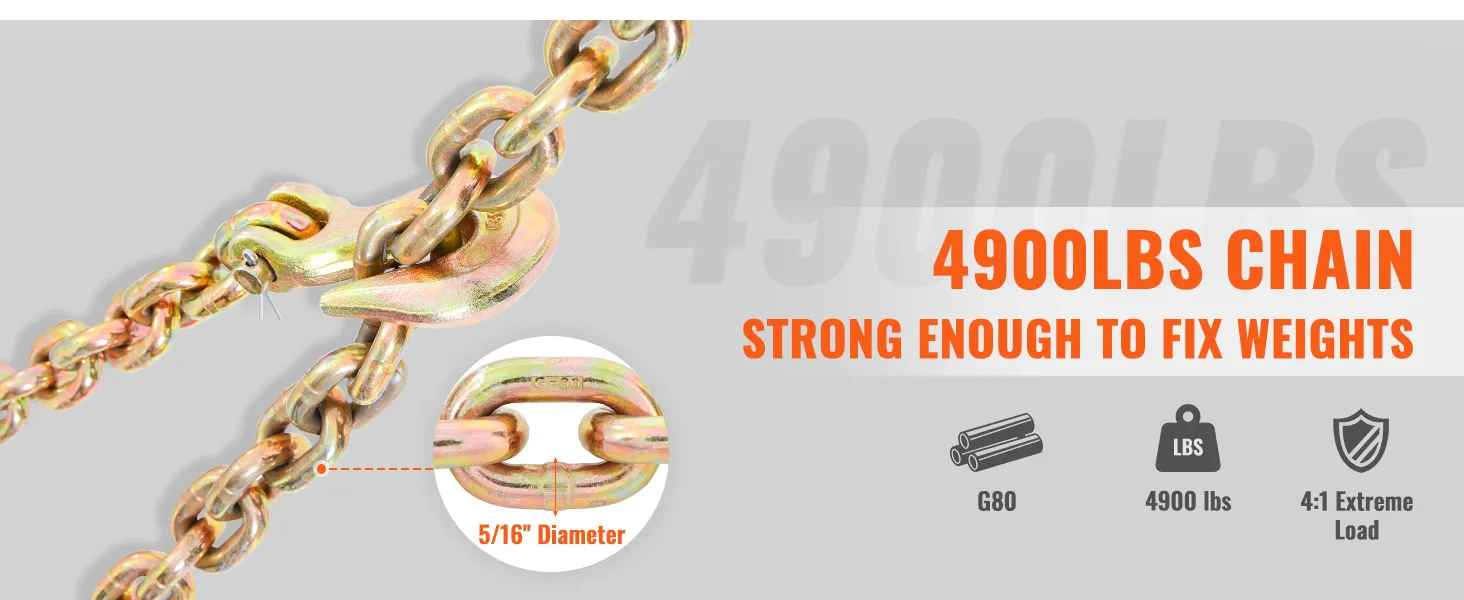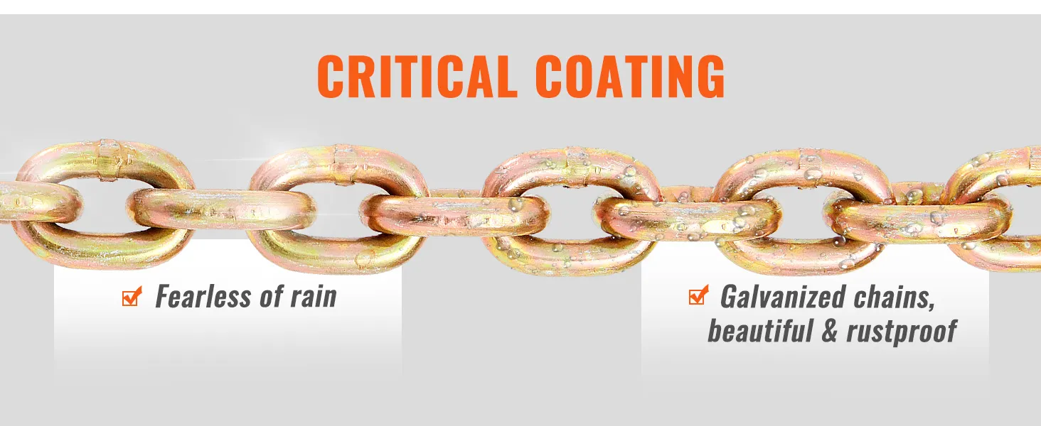 Použitie prepravnej viazacej reťaze od spoločnosti VEVOR je jednoduché. Naša prepravná viazacia reťaz je taká jednoduchá a pohodlná na obsluhu, najmä keď ju potrebujete na rôzne úlohy v tejto oblasti. Články majú perfektnú veľkosť, aby sa zmestili do štandardných háčikov. To zakaždým zaručuje bezpečné a jednoduché spojenie. Háčiky reťaze sa pevne zachytia na článkoch, čím sa zabráni akémukoľvek skĺznutiu. Už nebudete musieť zápasiť s nepohodlne veľkými článkami alebo háčikmi. Vďaka jednoduchému použitiu je reťaz vhodná na rôzne úlohy, ako je ťahanie klád alebo vlečenie. Pripájanie a odpájanie týchto spojov je jednoduchšie, takže svoje úlohy môžete vykonávať rýchlejšie a efektívnejšie. Tieto dokonale dimenzované články a háčiky sú dôkazom vysokokvalitnej konštrukcie reťazí.
